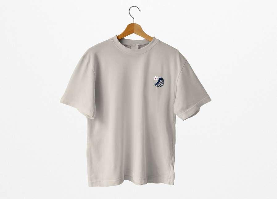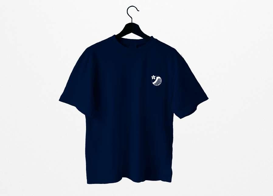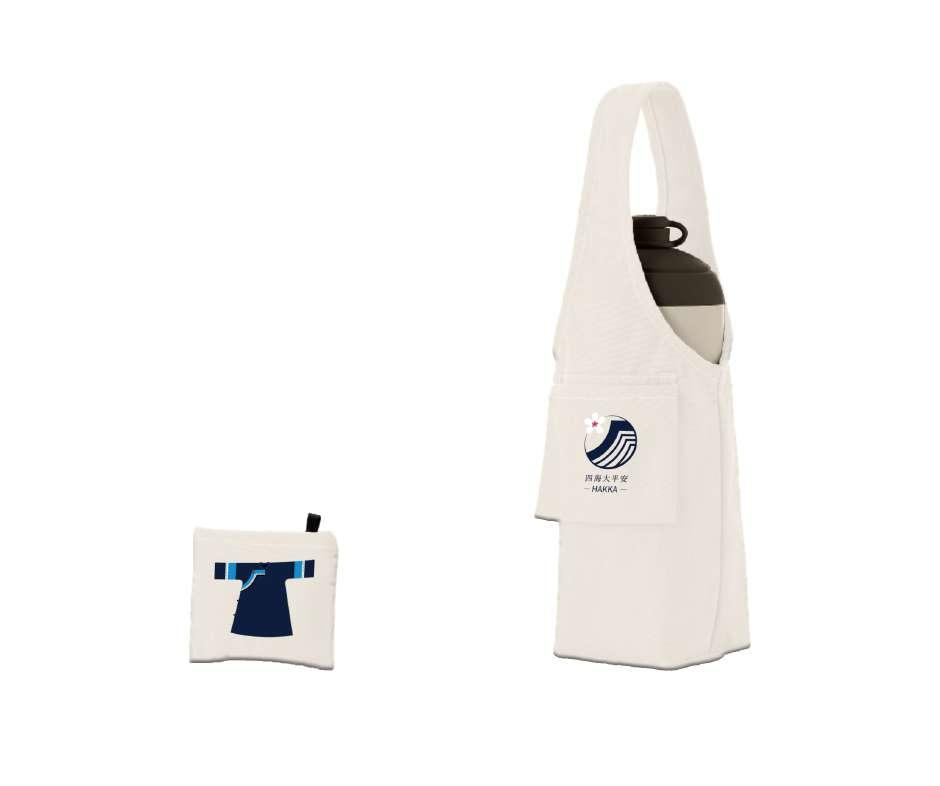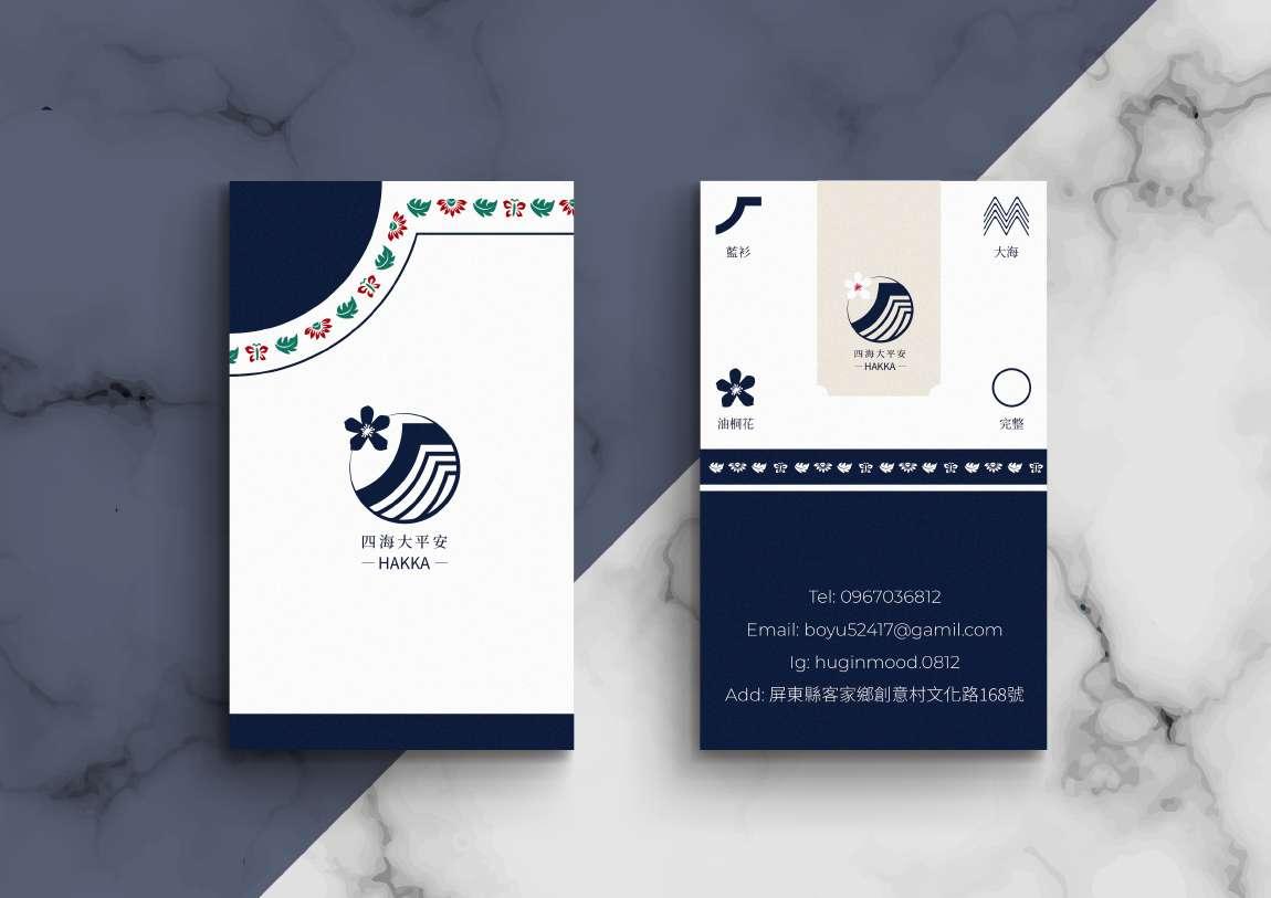 構圖以半邊的藍衫為主、中的闌干做為橋樑 左上以織布為海洋、湖泊右下則是編織稻田、山地 與農民勤奮工作、白色LOGO搭配輔助色的背底呈現。