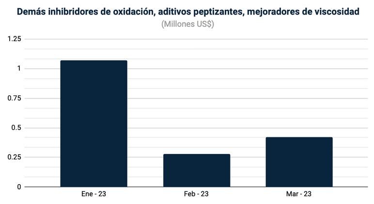 Las importaciones peruanas en el primer trimestre del 2023 sumaron un valor CIF de US$ 240 millones aproximadamente, siendo éstas inferiores a las del primer trimestre del 2022 en 12.9%. El principal proveedor durante este periodo fue Estados Unidos, con 43.8% de participación, seguido por Brasil, con 8 7% de participación
