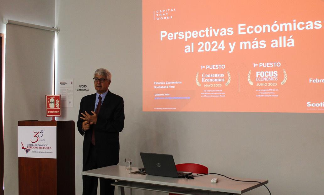 On this occasion we had the presentation of Guillermo Arbe, Senior Manager of the Economic Research Department of Scotiabank Peru who accompanied us with the presentation “Economic Outlook: to 2024 and beyond”.