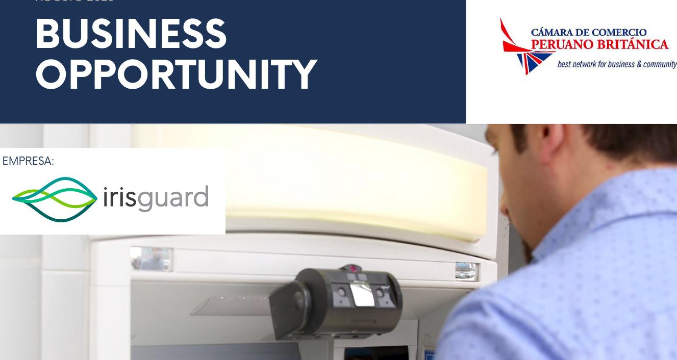 La empresa británica IrisGuard está interesada en encontrar un distribuidor en Perú. IrisGuard es una empresa global líder en soluciones de reconocimiento de iris de identificación biométrica, que proporciona una autenticación de extremo a extremo de transacciones financieras.