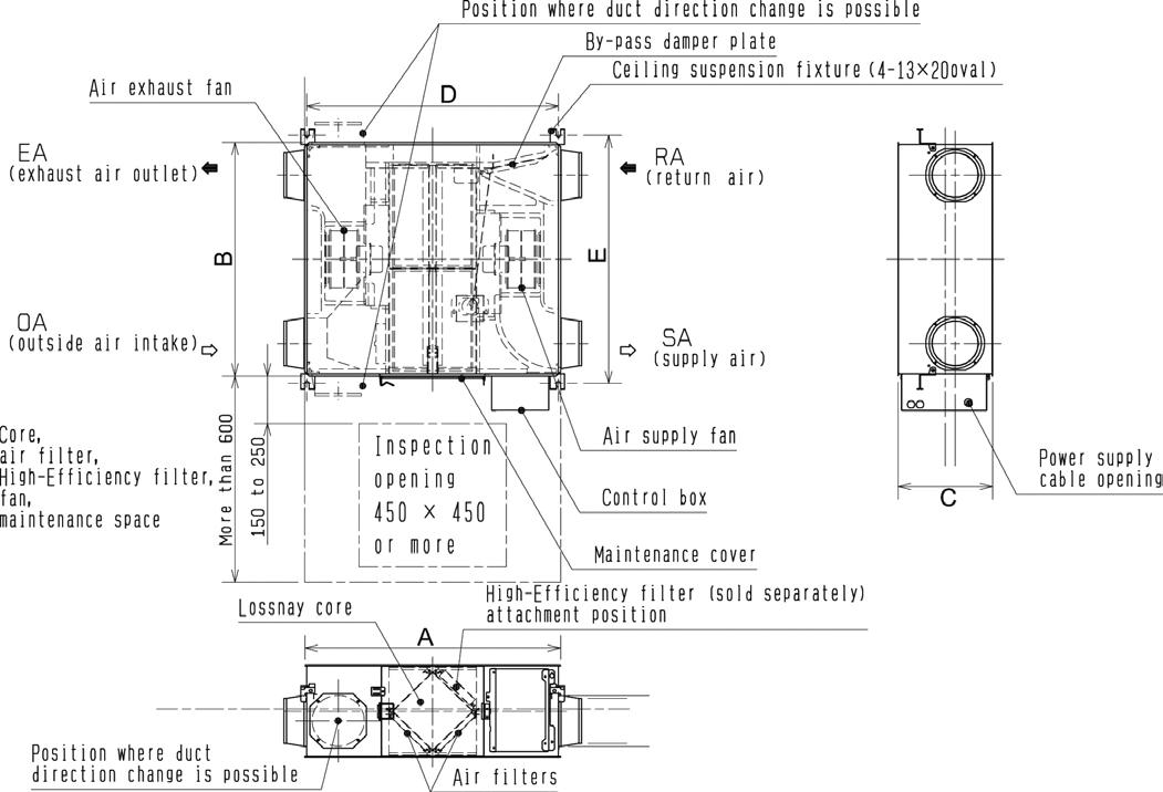 LGH-15RVX3-E DIMENSIONS LGH-25-100RVX3-E DIMENSIONS LGH-160RVX3-E DIMENSIONS LGH-200RVX3-E DIMENSIONS LGH-25RVX3-E LGH-35RVX3-E LGH-50RVX3-E LGH-65RVX3-E LGH-80RVX3-E LGH-100RVX3-E 780 888 888 908 1144 1144 A 735 874 1016 954 1004 1231 B 289 331 331 404 404 404 C 768 875 875 895 1131 1131 D 782 921 1063 1001 1051 1278 150 150 200 200 250 250 E DIMENSIONS MODEL NOMINAL DUCT DIAMETER CEILING SUSPENSION FIXTURE PITCH