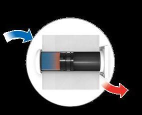 The unique heat exchanger design allows the Tempra to be fitted in a 100mm diameter hole, allowing it to replace standard 100mm extract fans while giving all the benefits of heat recovery. Maximum wall thickness is 460mm.