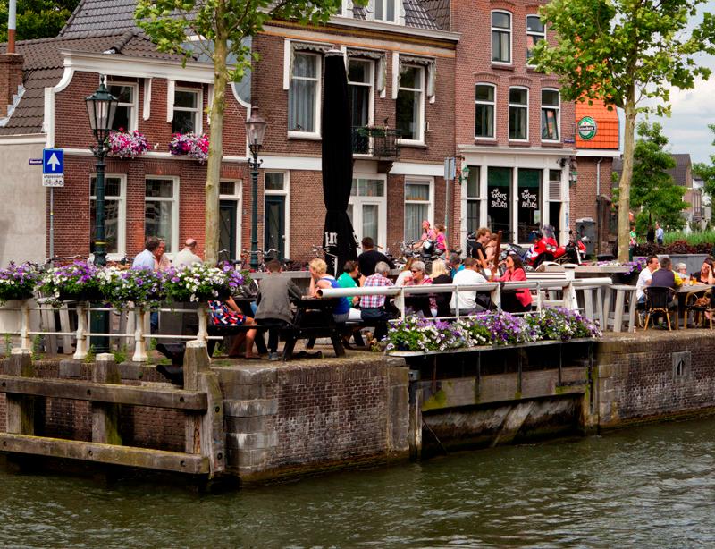 Geniet van koffie met appelgebak op het gezellige terras van het beroemde café Ome Ko, bij de sluis.