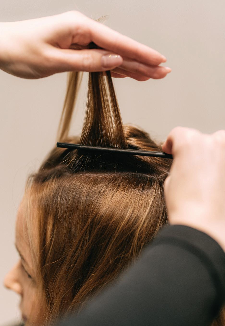 • Tarvittaessa voit sävyttää pidennyksiä suoravärillä, mutta älä käytä rakennepaikkaavia ainesosia sisältäviä tuotteita tai hapetevärejä pidennyshiuksille.