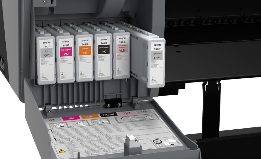 Seeking to expand your current business model, add personalised photo printing services and attract fresh custom as we move through spring and head into summer? Then don’t delay in installing Epson’s large format ‘P’ series printers. These workhorses are designed to help your retail business or minilab unleash the potential to profit from print. As usual, if you’re weighing up which is your best fit, the DPS Group, as Epson’s official reseller, can advise. Introduced last year, the most recent wide format printer options comprise the 24-inch Epson SureColor SC-P6500E, P6500D and P6500DE, or if you want to go bigger still there’s the 44-inch SC-P8500D. These joined the existing 12-ink SureColor SC-P7500 and SCP9500 large format printers, also at 24 inches and 44 inches in size, respectively. To drill a bit more into the detail, the 2400x1200 dpi SureColor SC-P6500E, P6500D, P6500DE and SC-P8500D and DL (with 1.6 litre ink pack) each feature 6-colour ink sets claimed to match the output from other 8-colour printers on the market. Aiming to deliver high quality photos and posters, ease of use comes courtesy of smart features, while high print speeds combine with low maintenance to improve productivity and reduce ownership cost. A flat-sided design is space saving, in allowing these latest offerings to be installed against walls, cabinets or in spaces with a shallow depth, with Wi-Fi capability ensuring they can be operated anywhere. A core feature of the above printers is their UltraChrome Pro6 pigment ink set that includes grey ink to broaden the