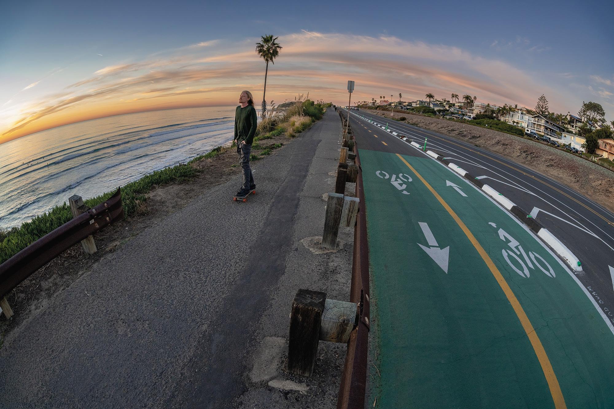 Different perspective: Tell your customers they can achieve an ultra wide angle fisheye-type effect by using Sigma’s 15mm f/1.4 DG DN Fisheye (skateboarder image) or get up close and personal from afar with its equally new 500mm f/5.6 DG DN OS telephoto lens (skier pic)