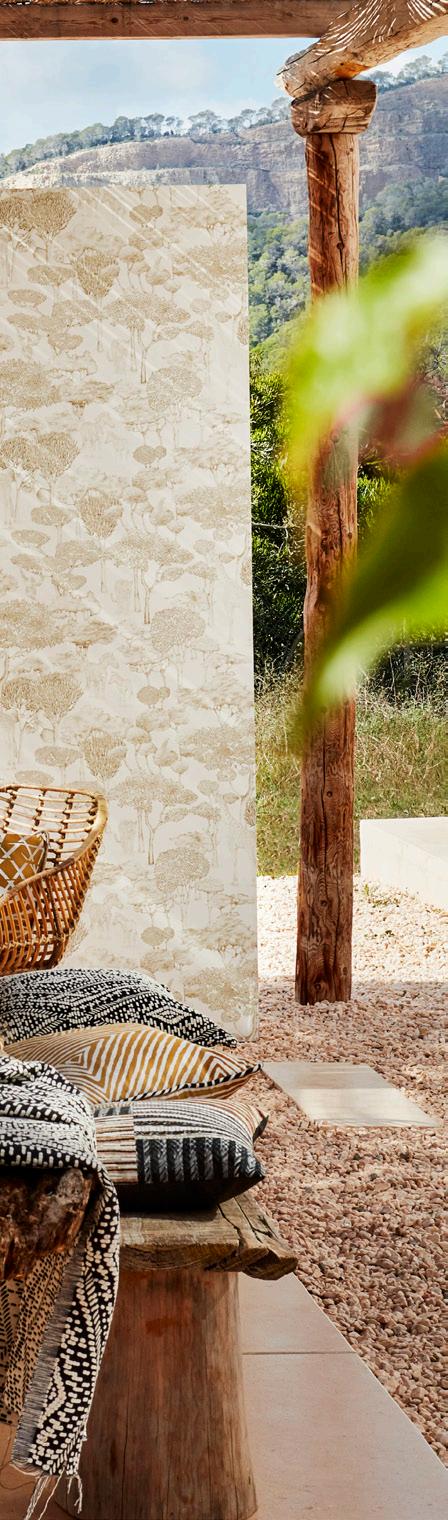Whilst many haven’t been able to travel to their favourite holiday destinations, it only seems right to bring them home instead. The trend for ‘holiday-inspired’ interiors gives everyone a chance to feel like they can escape the everyday. With many luxury hospitality groups considering renovation under the current restrictions, clients are seeking to reinvent their spaces, placing paramount importance on the element of relaxation and retreat with interior spaces. From Moroccaninspired colour palettes to secret sun traps trending on Instagram and Pinterest, creating a serene haven is a growing trend. Harlequin’s Mirador collection, launched earlier this year, does exactly this. Mirador is the Spanish word for ‘lookout’, featuring designs that are full of Spanish and African influences and come alive with eye-catching, inspirational designs to open up a treasure trove of international style filled with feeling.