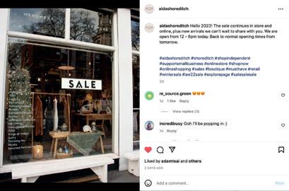 Social shopping is good news for indies who already excel in this area. In a recent survey by Retail Insights, over 70 per cent of shoppers highlighted the importance of interactive shopping. Staff can be available and approachable in store while retailers can connect with e-commerce users through a live chat.