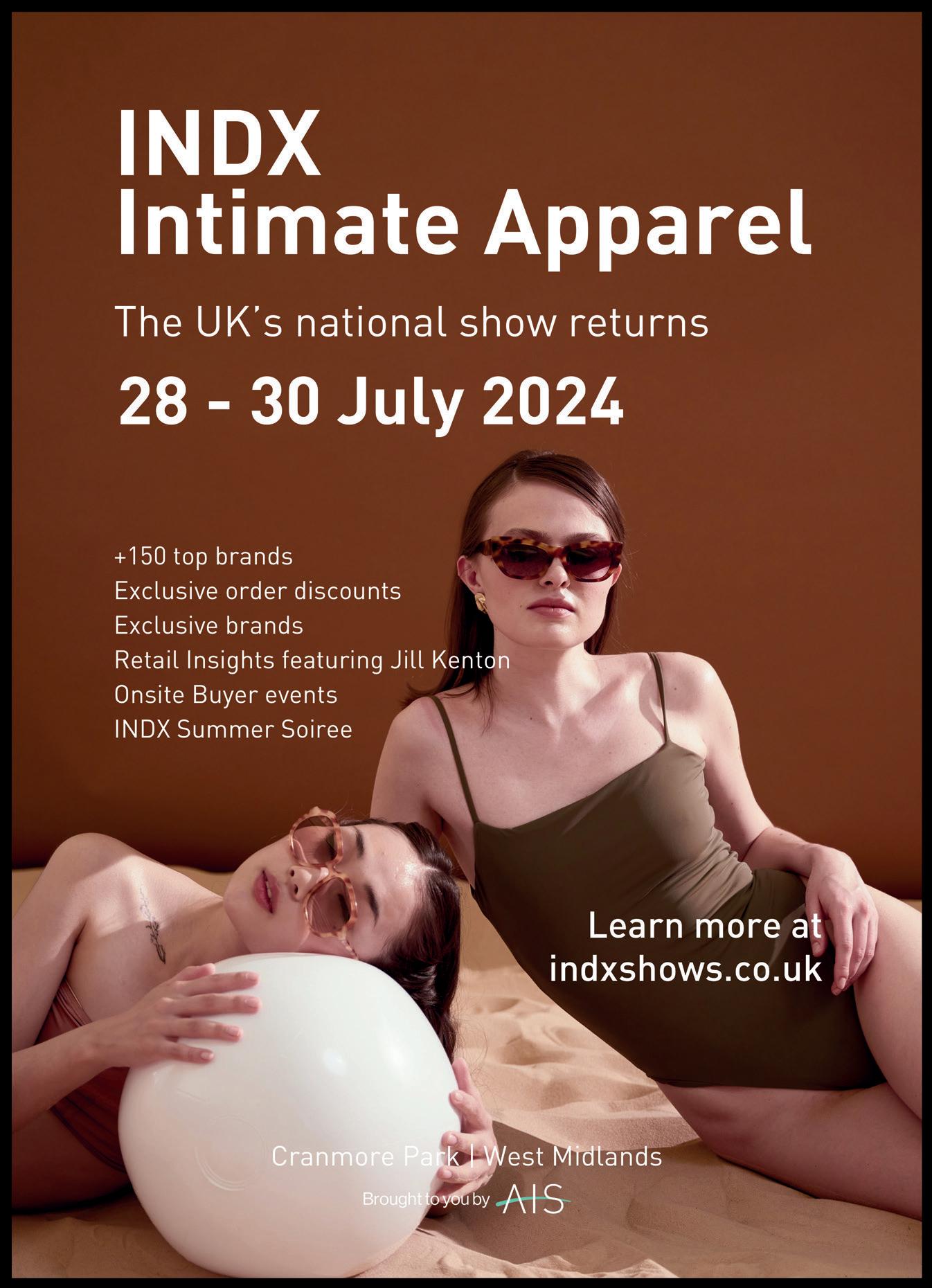 INDX summer 2024 trade show calendar includes INDX Man (14 – 16 July), INDX Woman (21 – 23 July) and Intimate Apparel (28 – 30 July), which all take place at Cranmore Park Exhibition Centre in Solihull; indxshow.co.uk
