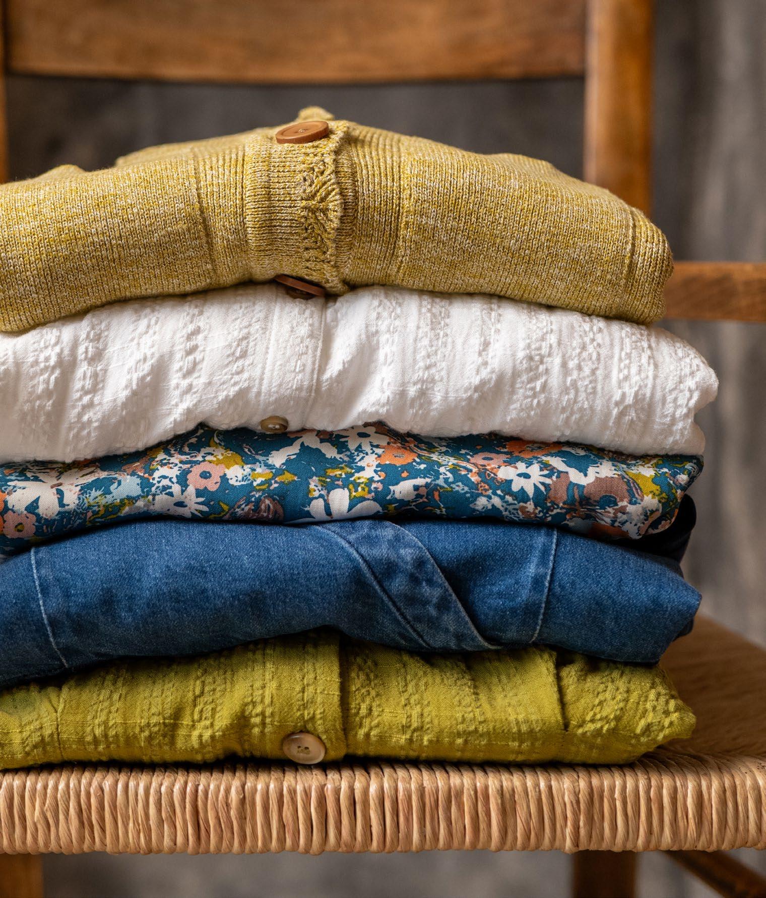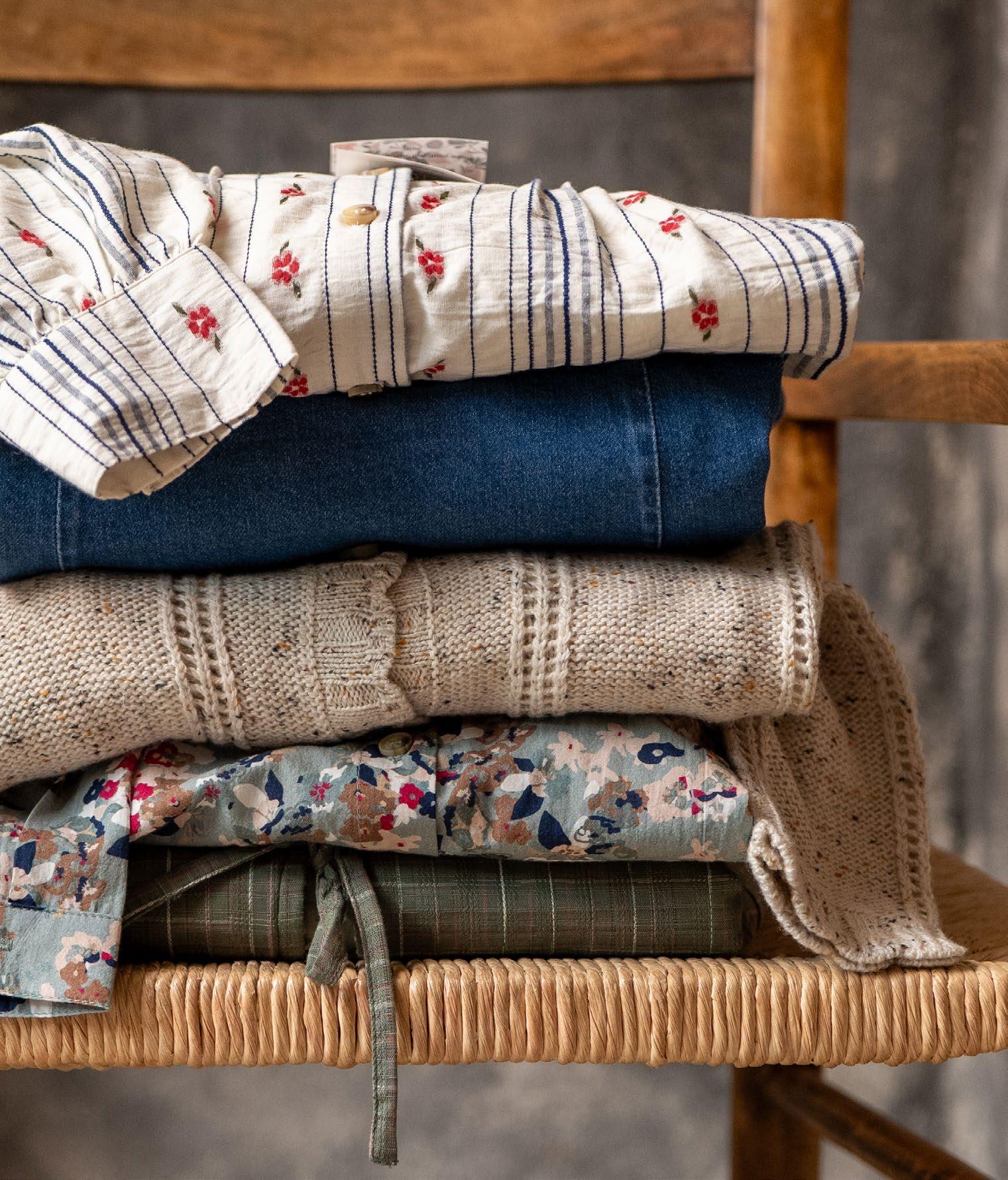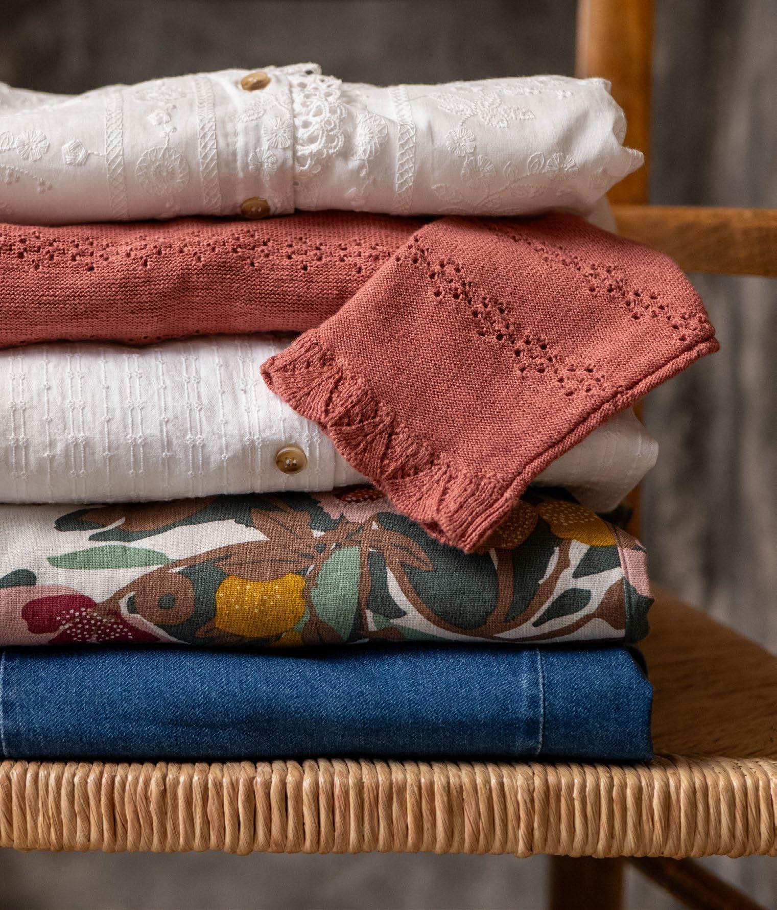 We introduce new linen-blend denim styles, soft and fluid with a beautiful drape, and versatile pieces that layer effortlessly for changeable days. Signature prints bloom across relaxed silhouettes — from riotous summer florals to delicate ditsies and sophisticated geos, always hand-drawn and full of charm. Think throw-on jersey dresses, soft knits, and layering pieces made from thoughtfully chosen fabrics. Knitwear offers versatile and wearable styles. New for this season, we offer a linen BCI cotton blend for those warmer months and our neppy fleck knit for early season.