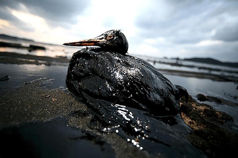 Alcaerelpetróleoenelaguaymezclar el suelo de las playas se vuel contaminantepeligroso Provocando que miles de aves y mamífero marinos tengan una muerte lenta po intoxicaciónehipotermia.