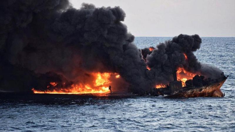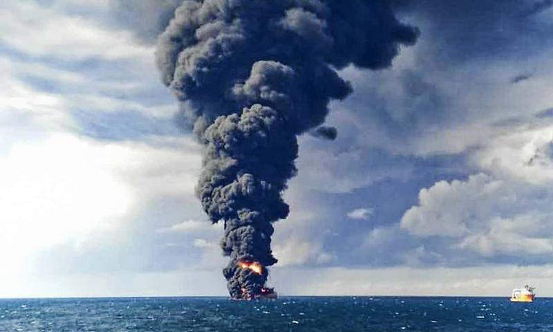Derrame de petróleo en aguas de China debido al hundimiento de un barco petrolero iraní se hundió derramando mas de 1 millón de barrilesalmar. Expertos creen que esto causará repercusionesdurantelassiguientes décadas