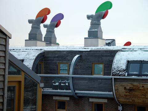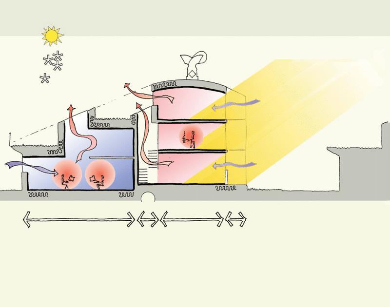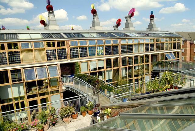Los hogares y lugares de trabajo de BedZED están bien ventilados sin necesidad de ventiladores eléctricos.