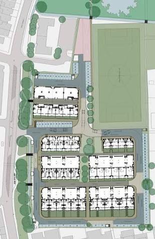 82 viviendas residenciales orientadas al sur para reducir el consumo energético 1600 m2 de equipamiento comunitario:
