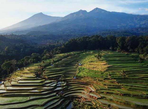 memang bukan isapan jempol belaka. Hawa sejuk terasa saat tiba di desa wisata Tetebatu. Area persawahan terasering yang membentuk seperti undakundakan dengan latar belakang pemandangan Gunung Rinjani, juga menjadi daya tarik desa ini. Suara serangga dan kicauan burung dari hutan Ulem-ulem, menambah syahdu suasana pedesaan di Tetebatu yang masih asri.