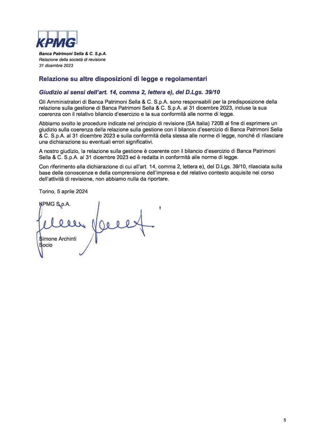 Banca Patrimoni Sella & C. ha raggiunto nel 2023 risultati ampiamente positivi, documentati dalla Relazione di Bilancio alla quale questa mia breve lettera fa da introduzione. Come leggerete l’azienda vive uno stato di crescita e buona salute, in forza di una solidità legata ad una visione strategica rivelatasi valida e produttiva e del lavoro di persone dedite e capaci.