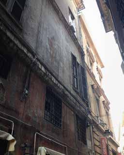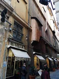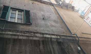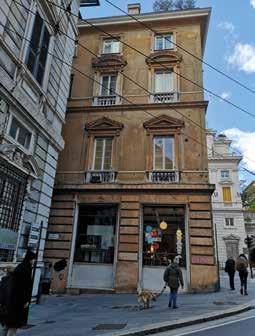 97. Viste prospettiche della parte bassa della facciata su Via Brignole Sale, verso piazza Portello, che sottolinea la soluzione d’angolo che risvolta sul vicolo. Fotografie dell’Autore.