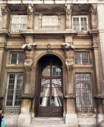 72. Dettaglio dell’ingresso con il pregevole portale marmoreo del Carlone. Riprende il motivo dei telamoni il palazzo Brignole, Durazzo, sito in piazza della Meridiana che mostra all’ingresso i due telamoni, opera più tarda di Filippo Parodi (1671). Palazzo che originariamente chiudeva Strada Nuova. A destra fotografia dell’Autore.
