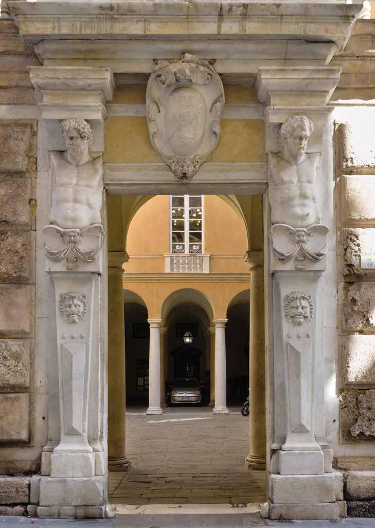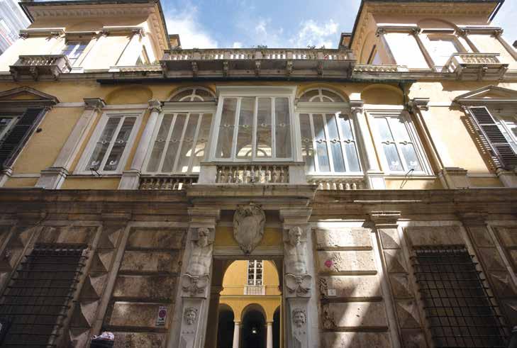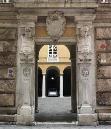 1 M. Labò, “Strada Nuova” (più che una strada, un quartiere), in Scritti di storia dell’Arte in onore di Lionello Venturi, I, Roma 1956. 2 Disegno a penna su cartone datato sesto decennio del Cinquecento, reso noto da Mario Labò (E. Poleggi, Strada Nuova, una lottizzazione del Cinquecento, Genova 1972, p. 58, fig. 9). 3 Per preparare il tracciato della strada, demolire case, sistemare i terrapieni e le strade nel circuito di Castelletto. E. Poleggi, Strada Nuova, una lottizzazione del Cinquecento, Genova 1968, pp. 31-33. 4 E. Poleggi, L. Grossi Bianchi, Una città portuale del Medioevo, Genova nei secoli X – XVI, Genova 1976. 5 P. Falzone, Genova: Le Strade Nuove e il sistema dei Palazzi dei Rolli. Approccio e metodologie nel progetto del colore come elemento di riqualificazione urbana e ambientale, in T.K. Kirova (a cura di), La formazione e le professionalità per la Conservazione, Valorizzazione e Gestione dei Siti Unesco in Italia, Torino 2007, pp. 70-79. 6 Poleggi 1972, p. 354; E. De Negri, Palazzo Lercari Parodi, Profilo storico critico, in L. Vagnetti, Genova, Strada Nuova, Genova 1967, p. 138. 7 P. Montano, Palazzo Lercari, Rilievi e appunti critici, in L. Vagnetti, Genova, Strada Nuova, Genova 1967, pp. 140-141. 8 R. Reinhardt, Palast-Architekur von Ober Italien und Toskana, von XV-XVII Jahrhundert Genua, Berlino 1886. 9 M.P. Gauthier, Le plus beaux edifices de la ville de Gênes et de ses environs, Parigi 1818. 10 R. Reinhardt, Palast-Architekur von Ober Italien und Toskana, von XV-XVII Jahrhundert Genua, Berlino 1886. 11 L. Vagnetti, Genova, Strada Nuova, Genova 1967. 12 Questo primo ordine, così particolare, è attribuibile ad una influenza emiliana, o quanto meno ad una «trascrizione arbitraria e su altra scala di certi diffusi elementi del repertorio di Giambattista Castello il Bergamasco» (Poleggi 1968, p. 354). 13 «[...] nei più tipici modi genovesi di facciata affrescata. Essa consiste in una partitura a motivi architettonici e decorativi dipinti, dove spiccano lesene di ordine gigante formanti nicchie dove sono dipinte singole figure; tale decorazione interessa soprattutto i prospetti laterali, [...] che vengono così ad essere un poco movimentati ed arricchiti nelle vaste e lisce pareti, architettonicamente assai povere. Rimangono oggi visibili, ad un attento esame, nelle ore di maggior luce, o solo le tracce di nicchie ad arco delimitate dalle grandi lesene scanalate, con dentro macchie confuse che sono le figure, o alcune figure più distinte, di cui una assai movimentata. Quasi scomparsi, poiché oggi rimangono solo vaste macchie scure causa il dilavamento e lo smog, i colori originali, tranne alcune lesene nei toni del giallo e alcune campiture rosso-rosa. Tale decorazione potrebbe essere coeva alla costruzione del palazzo, avendo quei caratteri cinquecenteschi di elementi e partiture architettoniche quali si ritrovano ad esempio nel non lontano palazzo Pallavicini di piazza Fontane Marose» (vedi P. Falzone, Scheda “A”, Palazzo Parodi, già Imperiale Lercari, Genova 1979). 14 Lo stesso era accaduto poco prima (1927-28), a conclusione dei lavori della Galleria e della sistemazione della piazza Portello, per l’adiacente palazzo Spinola, prolungato con un nuovo imponente corpo a nord, allora proprietà della banca d’America e d’Italia.