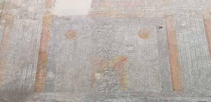 80. Dettagli della sequenza di tracce conservate della decorazione dipinta. Fografie dell’Autore. Fotografie dell’Autore, anno 2021.