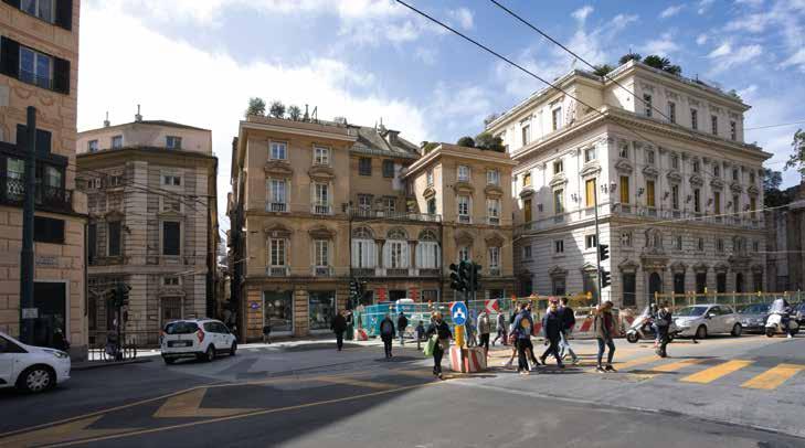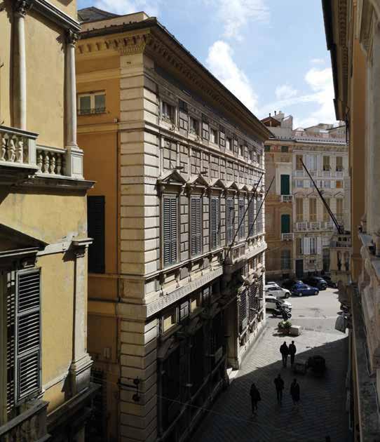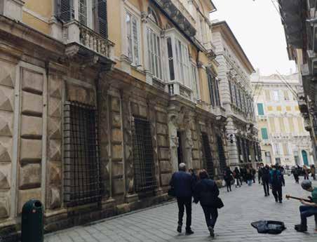74. Vista dal palazzo della Camera di Commercio, già palazzo di Tobia Pallavicino, dello spigolo di levante del palazzo nel contesto della parte finale della Strada che confluisce nella piazza Fontane Marose. Fotografia dell’Autore.