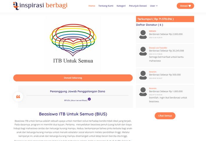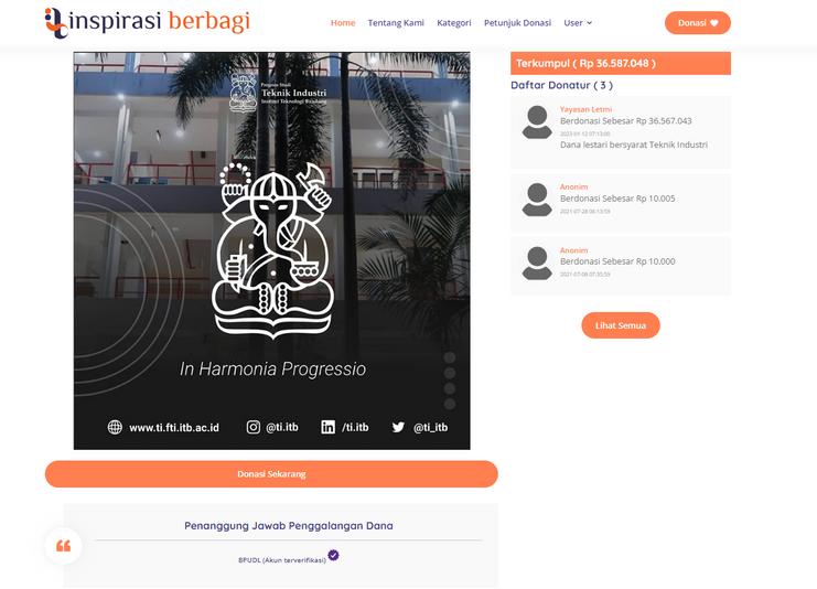 Dalam rangka memfasilitasi kemudahan dan transparansi penggalangan dana secara daring, BPUDL menyediakan kanal “InspirasiBerbagi” yang dapat dimanfaatkan oleh Unit di ITB maupun donatur yang akan berkontribusi bagi ITB