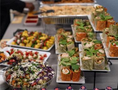 We serve breakfast and lunch daily. Our customers love that we offer a lot of healthy dishes that are not greasy or full of salt. Our organic turkey meatloaf, mac and cheese, Southern fried whiting, and many of our gourmet wraps are loved. However, we specialize in catering. We hold five stars on Google and some favorites for event catering are our sweet chili vegan dumplings, wings of many flavors, meatballs, mango salads, pepper steak, and our homemade desserts.