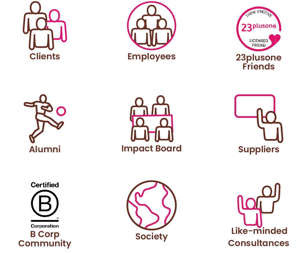Ourapproachto impact-driven strategy,positive culture&attractive brandingstartswith empathyand profound understandingofthe humandrivesof people.23plusoneis ourtooltodiscover andgraspemotive dynamics.