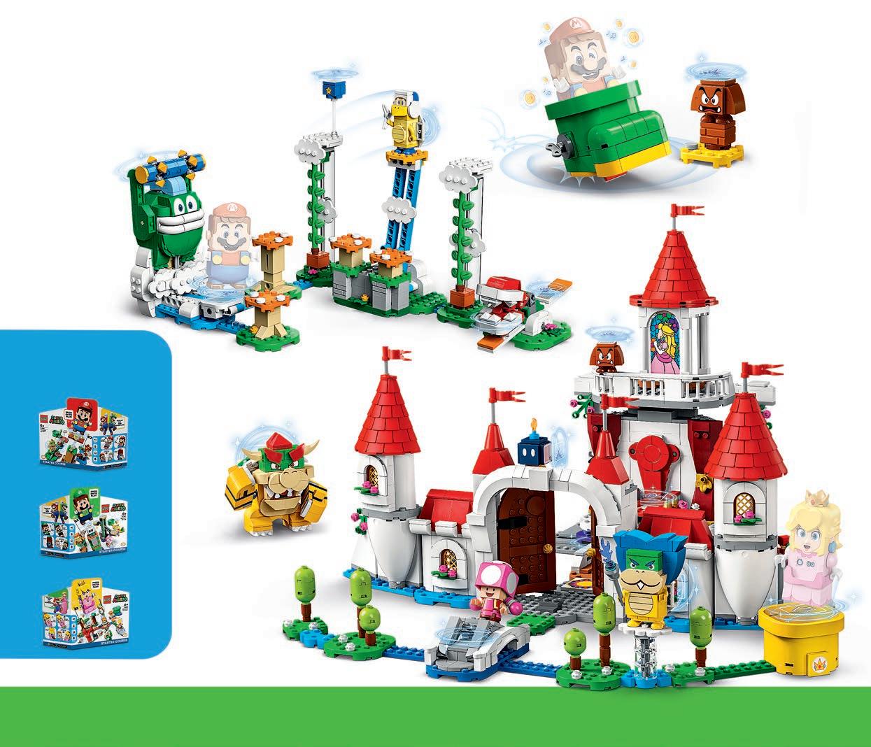 TM & © 2023 Nintendo. The Bluetooth® word mark and logos are registered trademarks owned by Bluetooth SIG, Inc. and any use of such marks by the LEGO Group is under license. Other trademarks and trade names are those of their respective owners. STARTERSET 71360 ODER 71387 ODER 71403 WIRD BENÖTIGT PACK DE DÉMARRAGE 71360 OU 71387 OU 71403 REQUIS 71403 LEGO® Mario™ und LEGO® Peach™ sind nicht enthalten LEGO® Mario™ et LEGO® Peach™ non inclus 71409 Maxi-Spikes Wolken-Challenge – Erweiterungsset Ensemble d’extension Le défi du Maxi-Spike sur un nuage 7+ Jahre / ans 71404 Gumbas Schuh –Erweiterungsset Ensemble d’extension La chaussure du Goomba 6+ Jahre / ans 71408 Pilz-Palast –Erweiterungsset Ensemble d’extension Le château de Peach 8+ Jahre / ans 71360 71387 ERWEITERE DEIN STARTERSET COMPLÈTE TON PACK DE DÉMARRAGE ERWEITERUNGSSETS ENSEMBLES D’EXTENSION