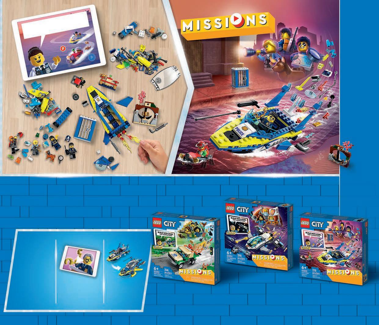 47 ERLEBE ATEMBERAUBENDE INTERAKTIVE ABENTEUER MIT LEGO ® CITY MISSIONS! WAS BAUST DU, UM DIE LAGE ZU RETTEN? VIS DES AVENTURES INTERACTIVES PALPITANTES AVEC LEGO ® CITY MISSIONS! QU’EST-CE QUE TU CONSTRUIS POUR SAUVER LA SITUATION? 60355 Detektivmissionen der Wasserpolizei Missions des détectives de la police sur l’eau 6+ Jahre / ans BAUE MIT GESCHICHTEN CONSTRUIS AVEC DES HISTOIRES ANSTATT MIT BAUANLEITUNGEN PLUTÔTQU’AVEC DES INSTRUCTIONS Mobiles Endgerät nicht enthalten Terminal mobile non fourni. LADE DIR DIE KOSTENLOSE LEGO® BUILDER APP HERUNTER TÉLÉCHARGE L’APPLI LEGO®BUILDER GRATUITE LEGO.COM/DEVICECHECK BAUE ES SO, WIE‘S DIR GEFÄLLT CONSTRUIS SELON TES ENVIES SPIELE 8 DIGITALE MISSIONEN 8MISSIONS NUMÉRIQUES POUR JOUER 60354 Erkundungsmissionen im Weltraum Missions d’exploration spatiale sur Mars 6+ Jahre / ans 60353 Tierrettungsmissionen Missions de sauvetage des animaux sauvages 6+ Jahre / ans LEGO ® CITY KOSTENLOSE APP KOSTENLOSE APP ZUM SPIELEN ERFORDERLICH ZUM SPIELEN ERFORDERLICH NÉCESSAIRE POUR JOUER NÉCESSAIRE JOUER APPLI GRATUITE APPLI GRATUITE Download 3D CATALOGUE