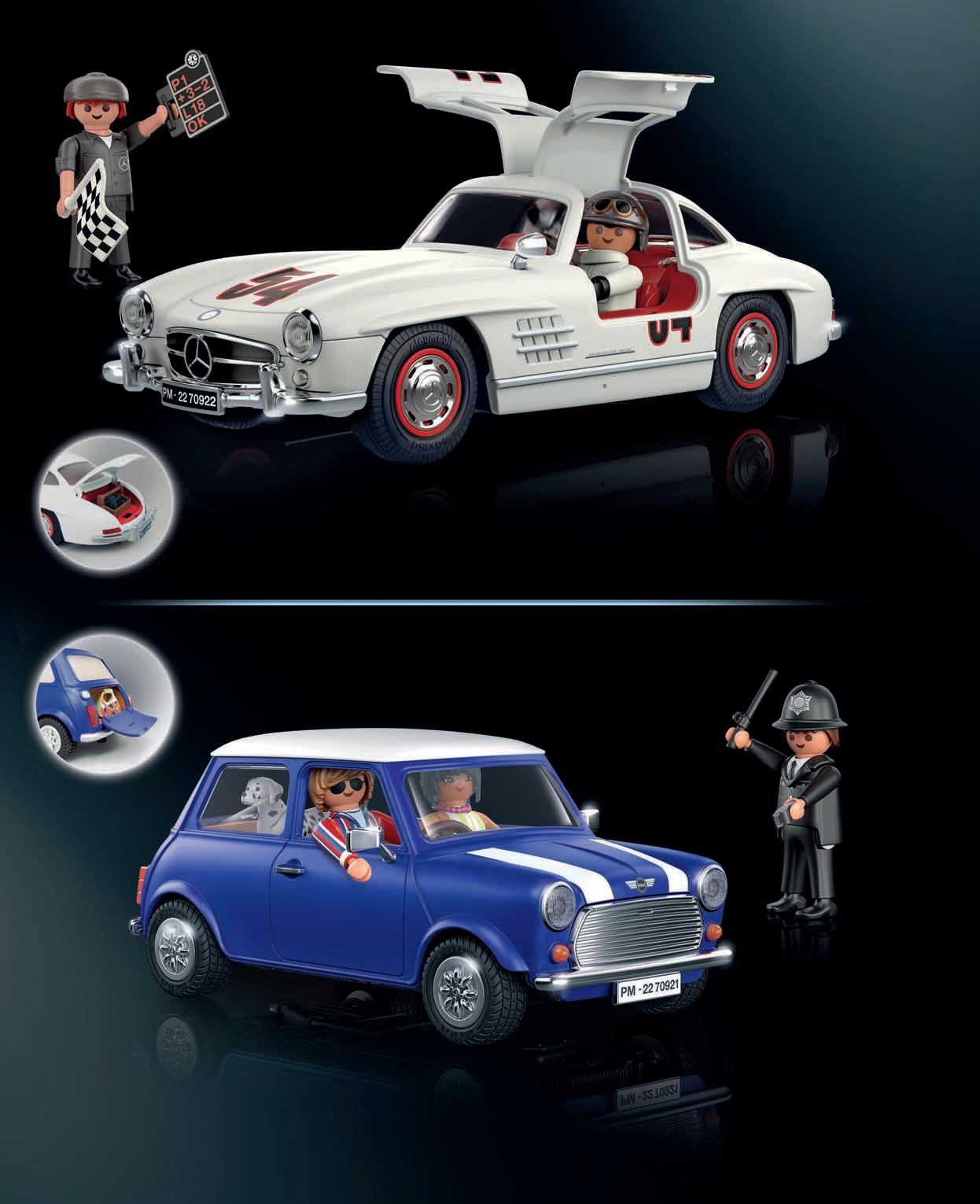 70922Mercedes-Benz 300 SL L’icône des voitures de sport des années 50 avec ses légendaires portes papillon. Maintenant en version PLAYMOBIL pour recréer une scène mythique de course automobile des années 50.