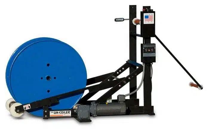 The Wire Un-Coiler can handle wire up to .250 inch diameter with a feed in the range of 36-96 RPM.