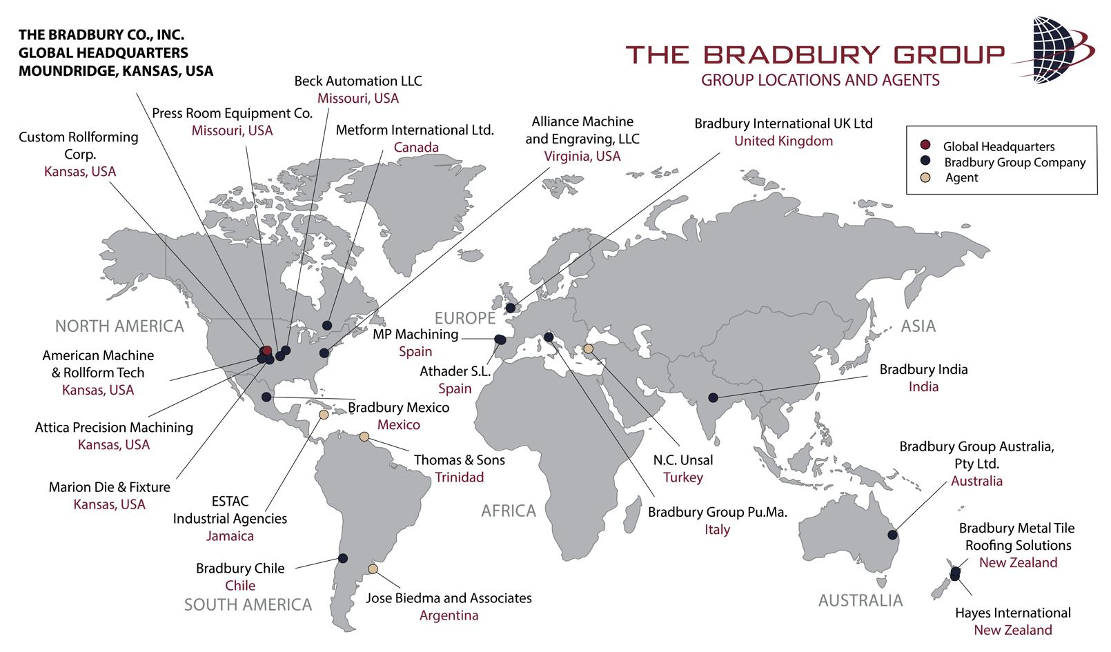 The Bradbury Group is a global family of manufacturing companies dedicated to producing equipment that provides decades of real-world opertaion. The Bradbury facility in Moundridge, KS serves as the global headquarters for the Group.