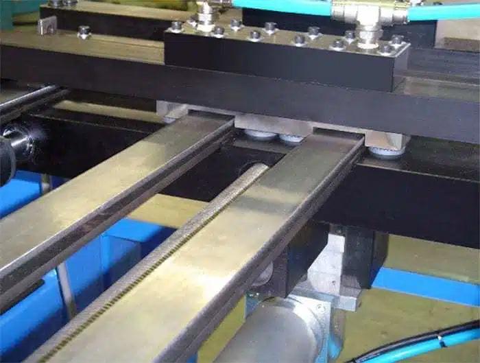 PRE Bridge Gripper Feeds use a “bridge” bar with grippers that contact the material across its width, except where relieved for anti-buckling rails. Ideal for thin, flexible, or delicate materials, they ensure fast, accurate, and reliable feeding with even force from a center-mounted cylinder.