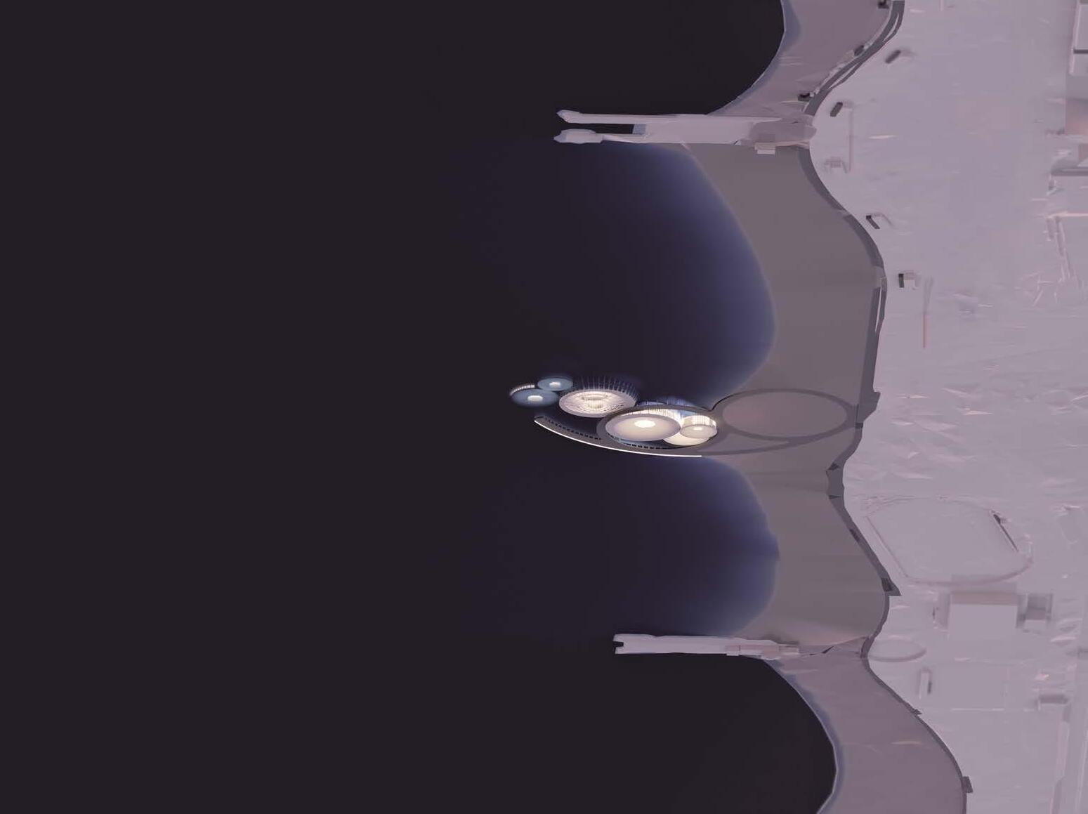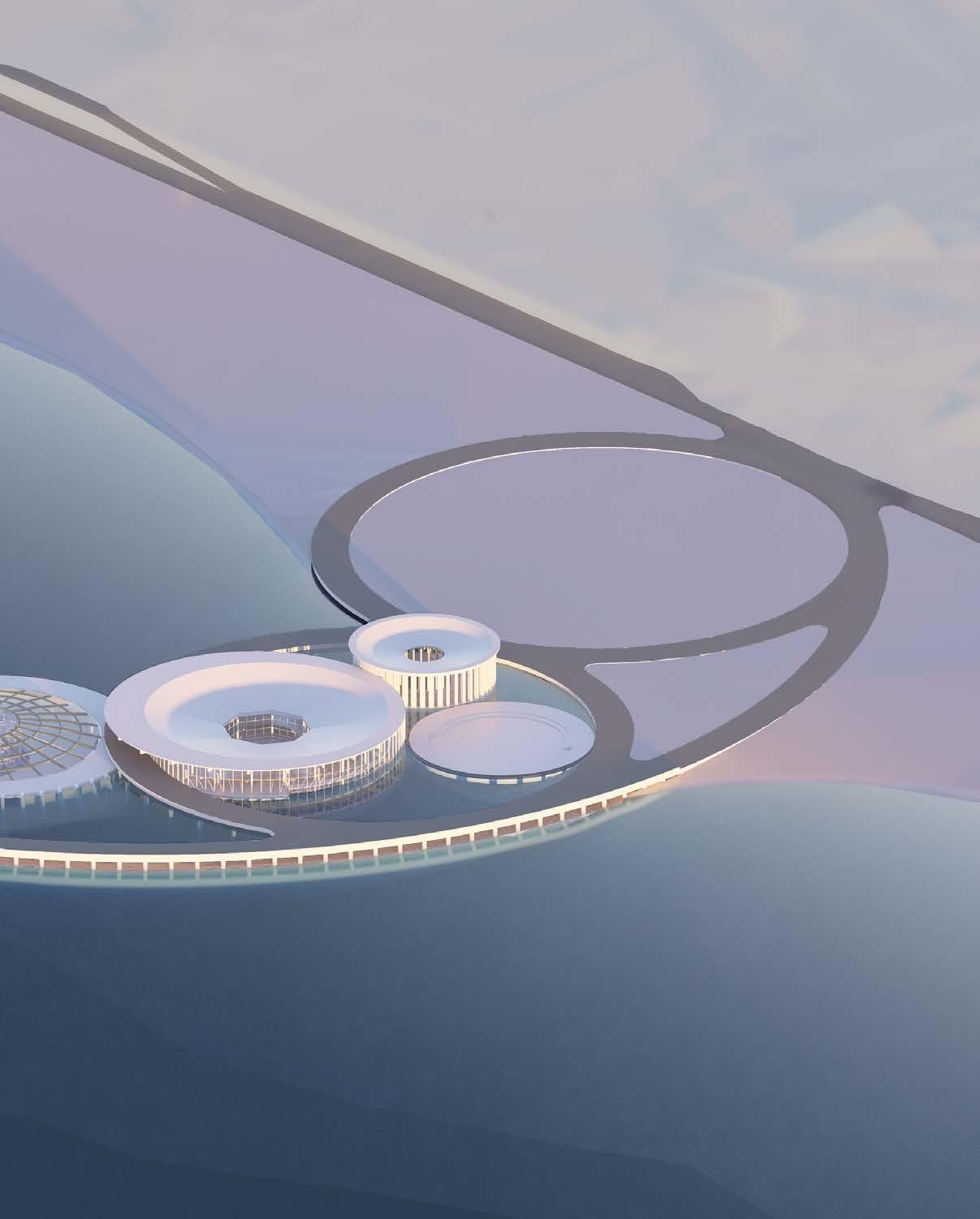 B3 and B4 are an impluvium and a displuviatum—a dome sloped away from the central atrium. They are designed as reprogrammable spaces and house most of the functions of a cultural center: exhibition, observation, and education spaces. Both have an exterior radius of 32 meters, an interior atrium with a radius of 9 meters, and include a 3-meter-wide ramp that functions