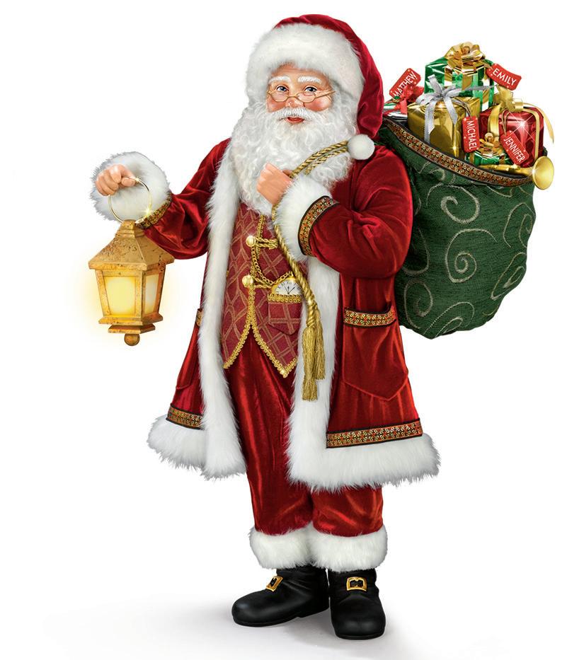 Introducing the grandly-sized, 36 inch tall Santa who comes bearing special gifts in the bag on his back – and a classic rendition of ‘The Night Before Christmas’ by the Painter of Light™ himself! Handcrafted in fine artist’s resin and handpainted, Santa is lifelike with twinkling eyes, rosy cheeks and fluffy whiskers. He wears a velvety red outfit with furry white trim and golden accents and shiny black boots. Personalise up to six special faux ‘presents’ in Santa’s toy sack with hand-written labels. Item No. 01-19995-001P