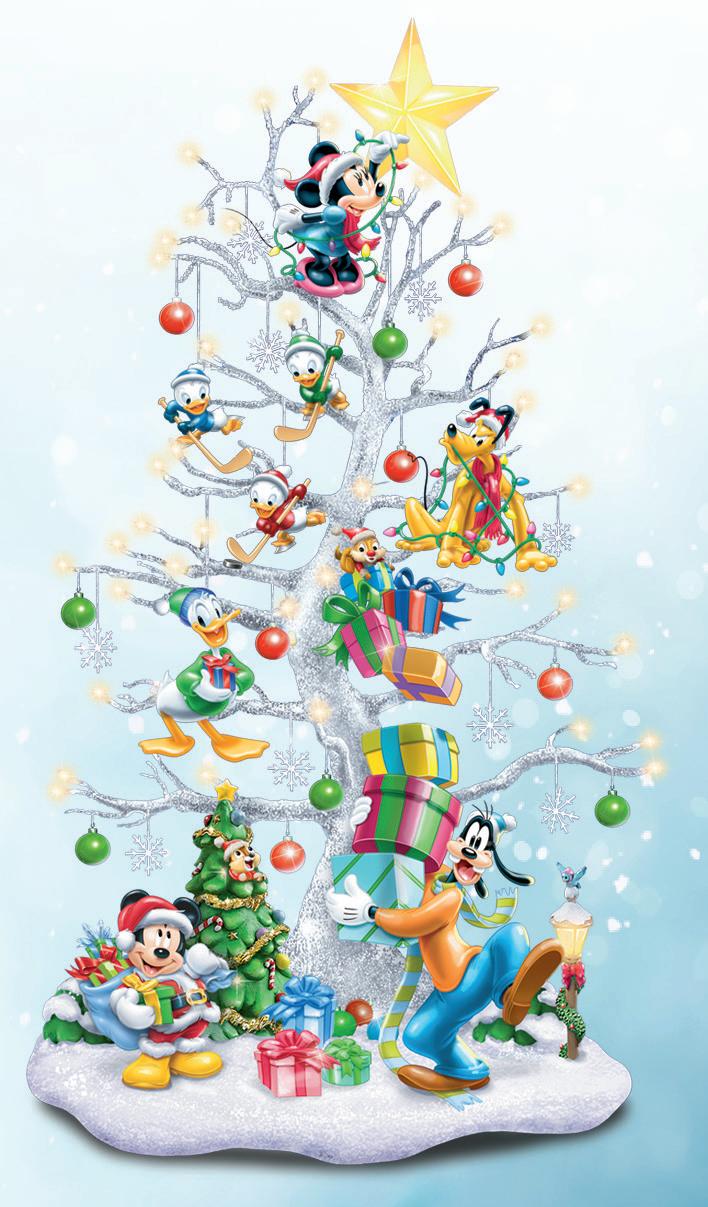 Officially licensed by Disney, this pre-lit tabletop Christmas tree overflows with handcrafted figurines that capture the personalities of each Disney character. Each fully-dimensional character ornament is affixed to the glitter-wrapped branches, which hold an assortment of colourful ornaments and snowflakes. At the flip of a switch, the LEDs at the tip of each branch and inside the golden star topper light up.