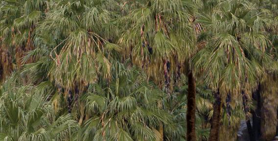 The Indian Canyons encompass 60 miles of hiking trails within an awe inspiring landscape of palm groves, rock formations, and streams.