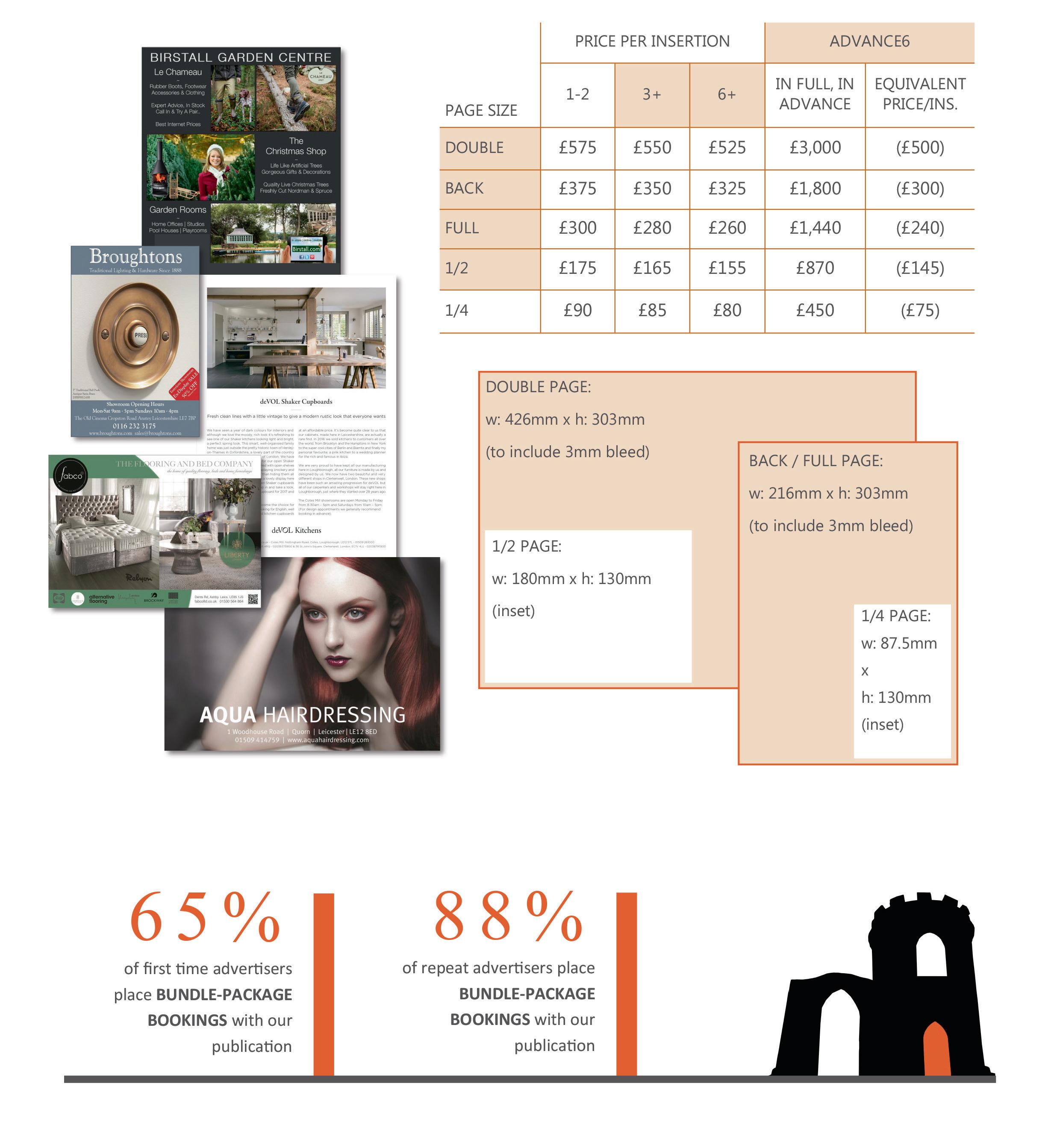 The Bradgate Magazine offers competitively priced insertion rates to suit all budgets and marketing strategies. Furthermore, take any one of our 3 or 6 edition bundle advertising packages - *over half, full or double page bookings - and receive a half page, full-colour, complimentary editorial to utilise across a booked issue of your choice.