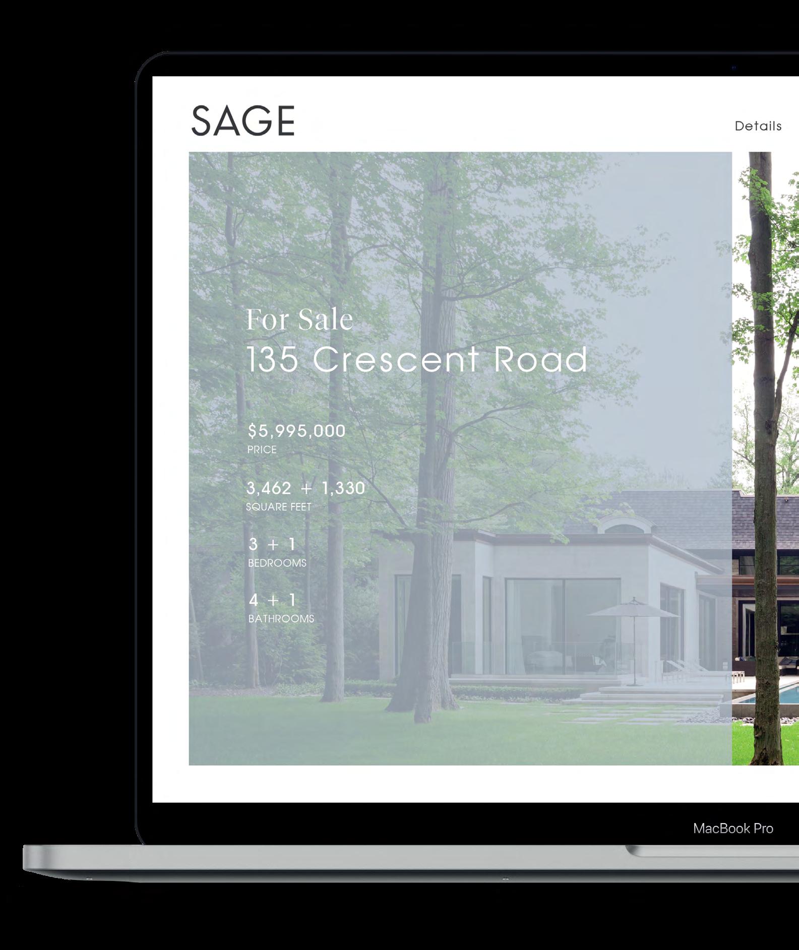 WE WILL EQUIP YOUR LISTING WITH A FRESH, UNIQUE SITE DESIGN ALIGNED WITH THE SAGE SELECT BRAND. THIS WEBSITE WILL CONTAIN THE INFORMATION BUYERS COVET MOST. ALL SAGE SELECT LISTING SITES WILL INCLUDE THE FOLLOWING: