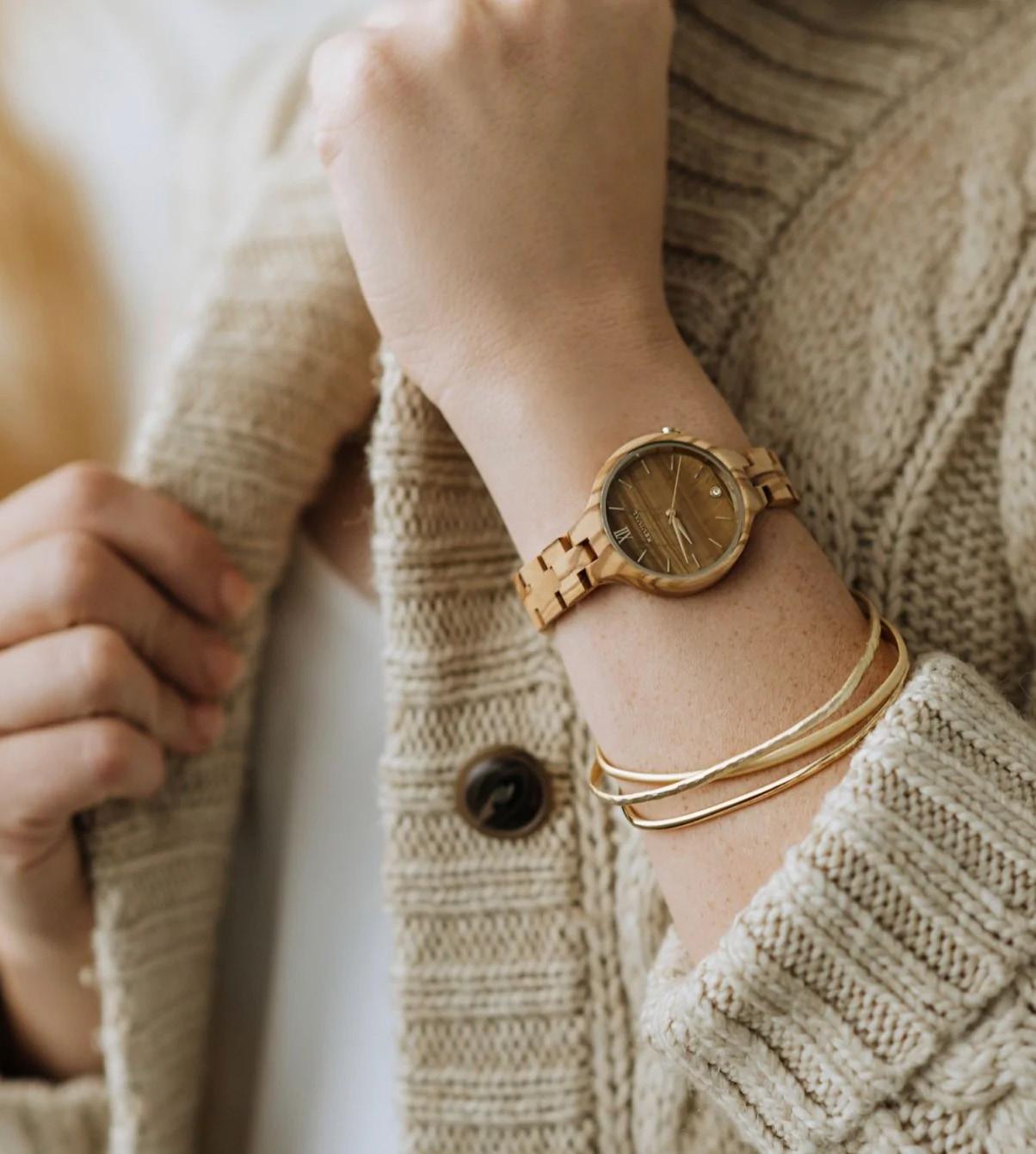 4. Revival Olivewood Tiger’s Eye Poise Watch $279.00