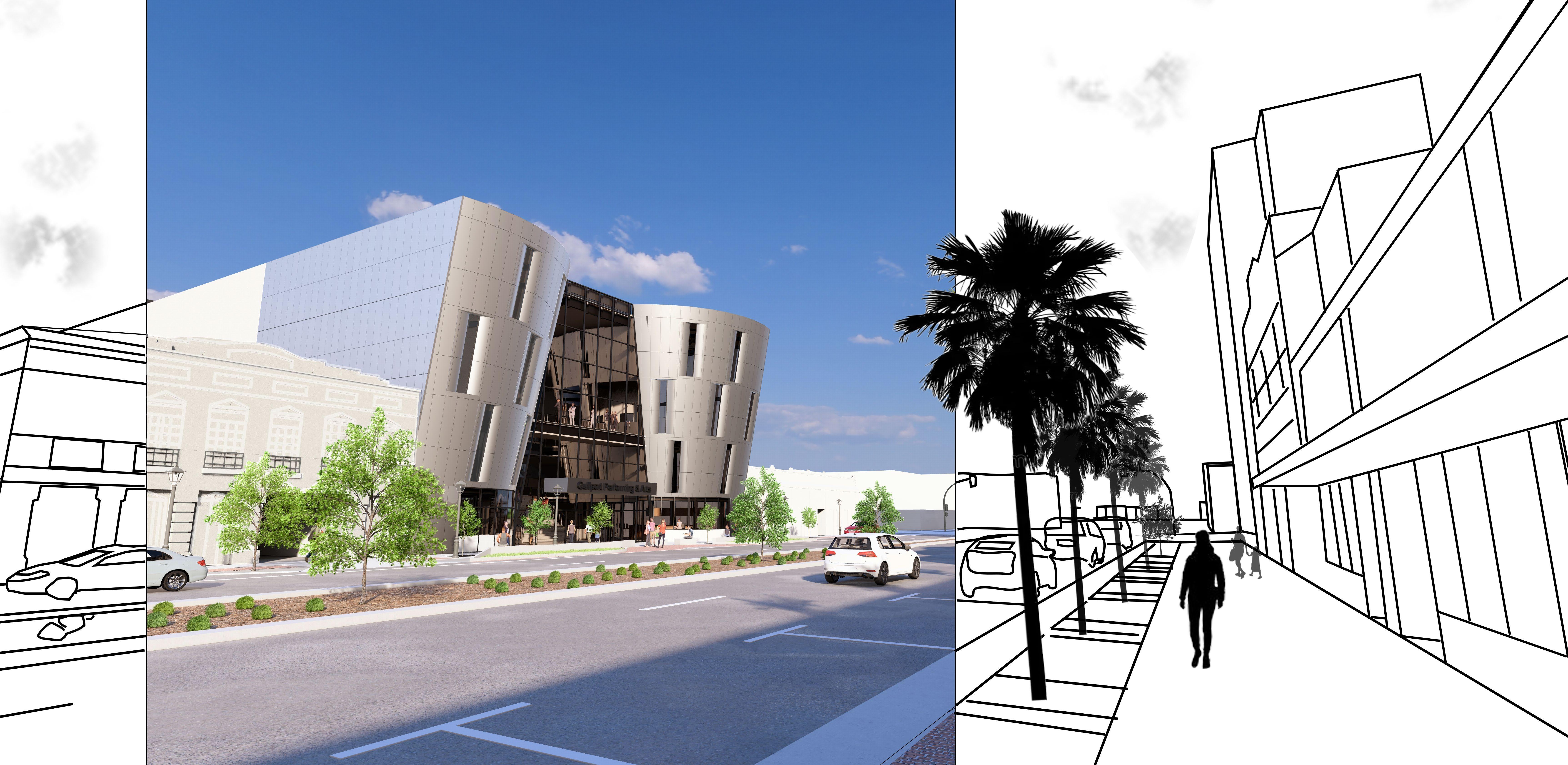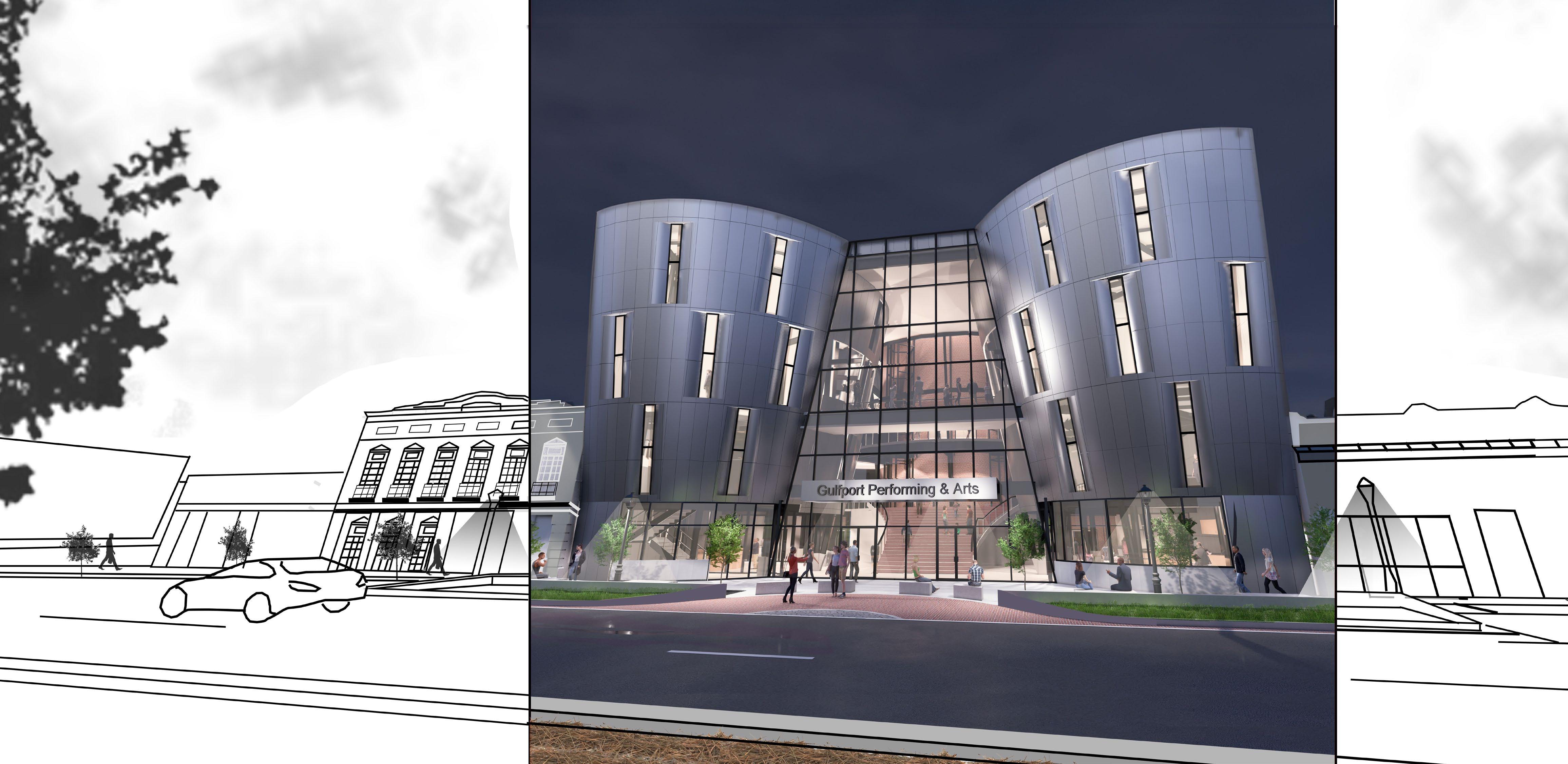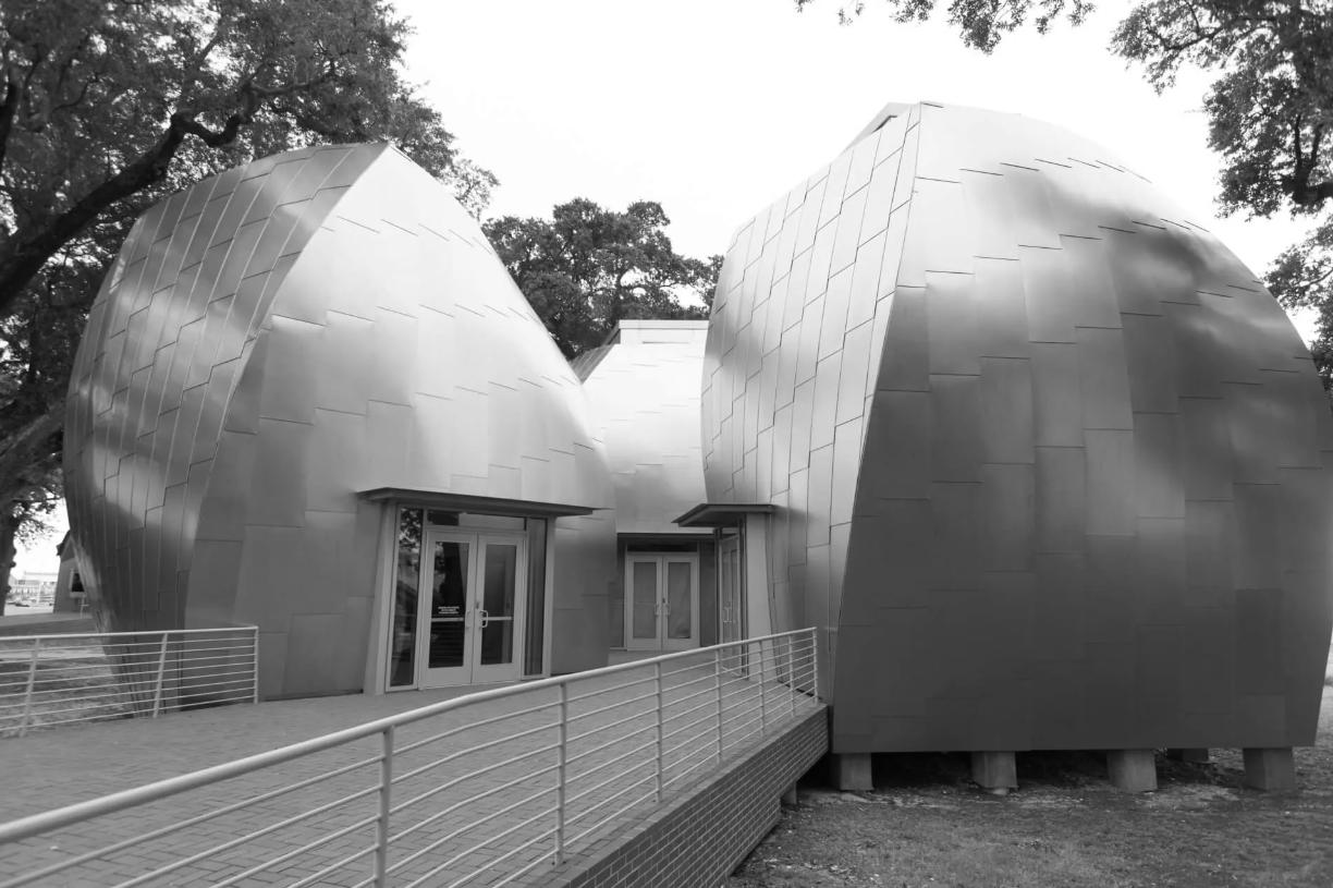 The Ohr O’Keefe campus was originally woven into a dense canopy of oak trees. The concept of a “dancing building,” first used for the Netherlands Office Building in Prague, was adapted for Biloxi, with the buildings Dancing With the Trees of this dramatic Gulf-front site.