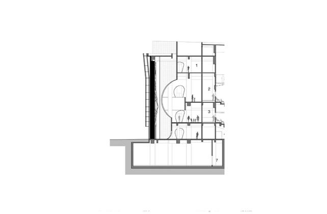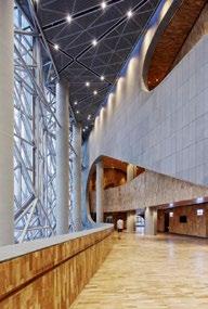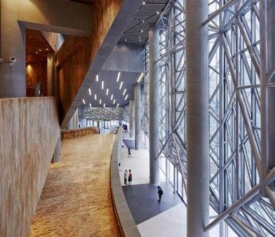 The significance in the material applications chosen lies in achieving a balance between functionality, aesthetics, and sustainability. As shown in pictures and materiality diagrams, the building mostly consist of four main materials: Stone monolith, glass, composite wood material, and steel. The building on the exterior is designed in the image of a solid stone structure, using a traditional material to fit its classical purpose, featuring rounded detailing and an elaborate staircase with a dramatic stair case within. Glass is also a significant material that is used in a very interesting way on the exterior facades.