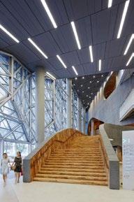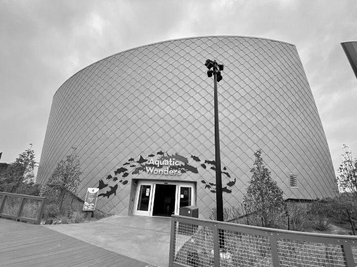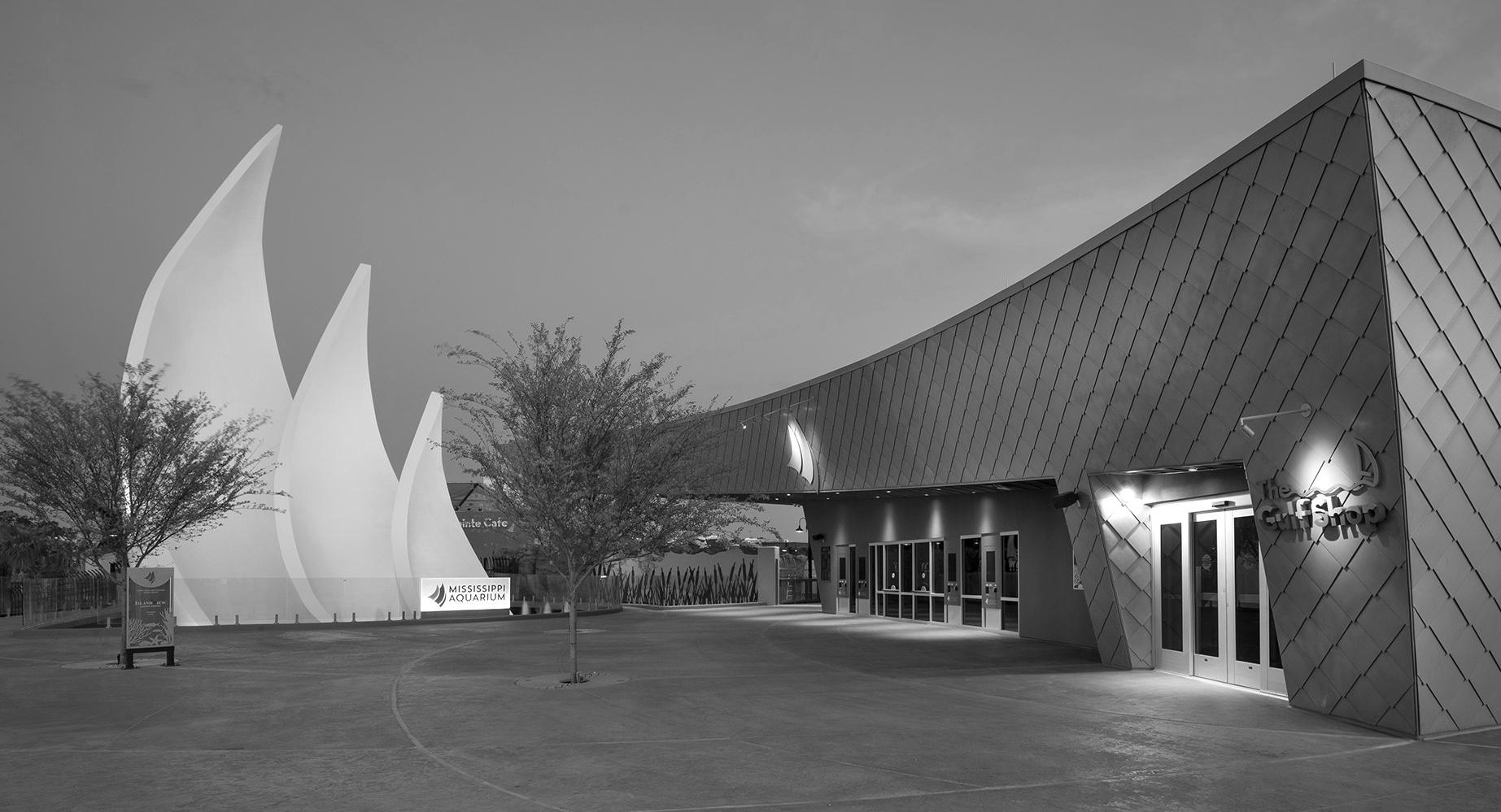 The project was complex because the buildings are clad with curved, overlapping zinc tiles required to withstand hurricane-force winds up to 175 miles per hour. Kurt Allen, president and CEO at Mississippi Aquarium, says, “From an architectural perspective, we wanted to be unique.
