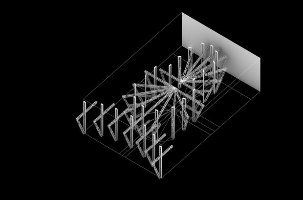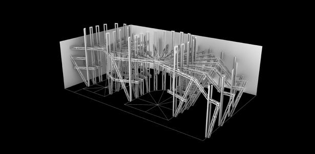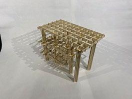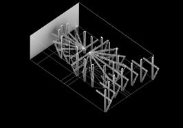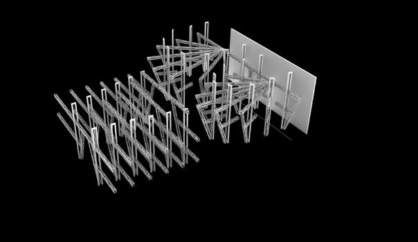The conceptual process involved the research of appropriate building precedents and the development of structural systems built from elements that are representative of commonly available construction elements. For steel structures we researched wideflange posts and beams systems, truss systems, girders systems, foldedplate systems, etc. We then deployed that knowledge to generate a kit of parts crafted of wooded elements (dowels, panels, etc.). Once conceptual models were designed and complete, we then started to aggregate these structural pieces in software and visualize 3D programmatic scenarios.