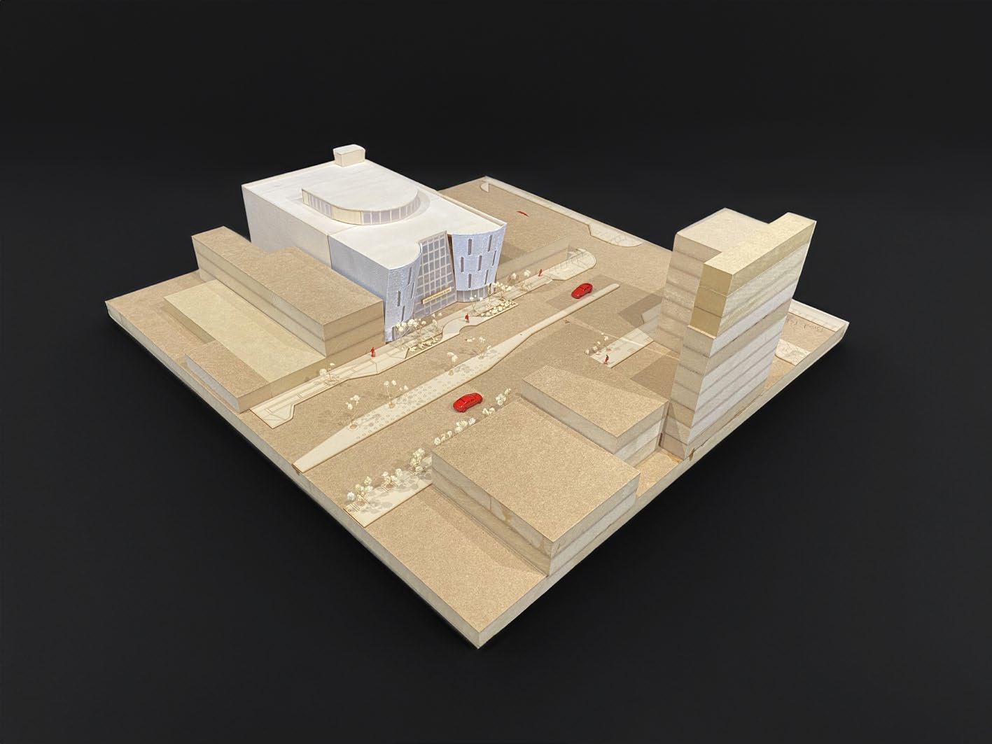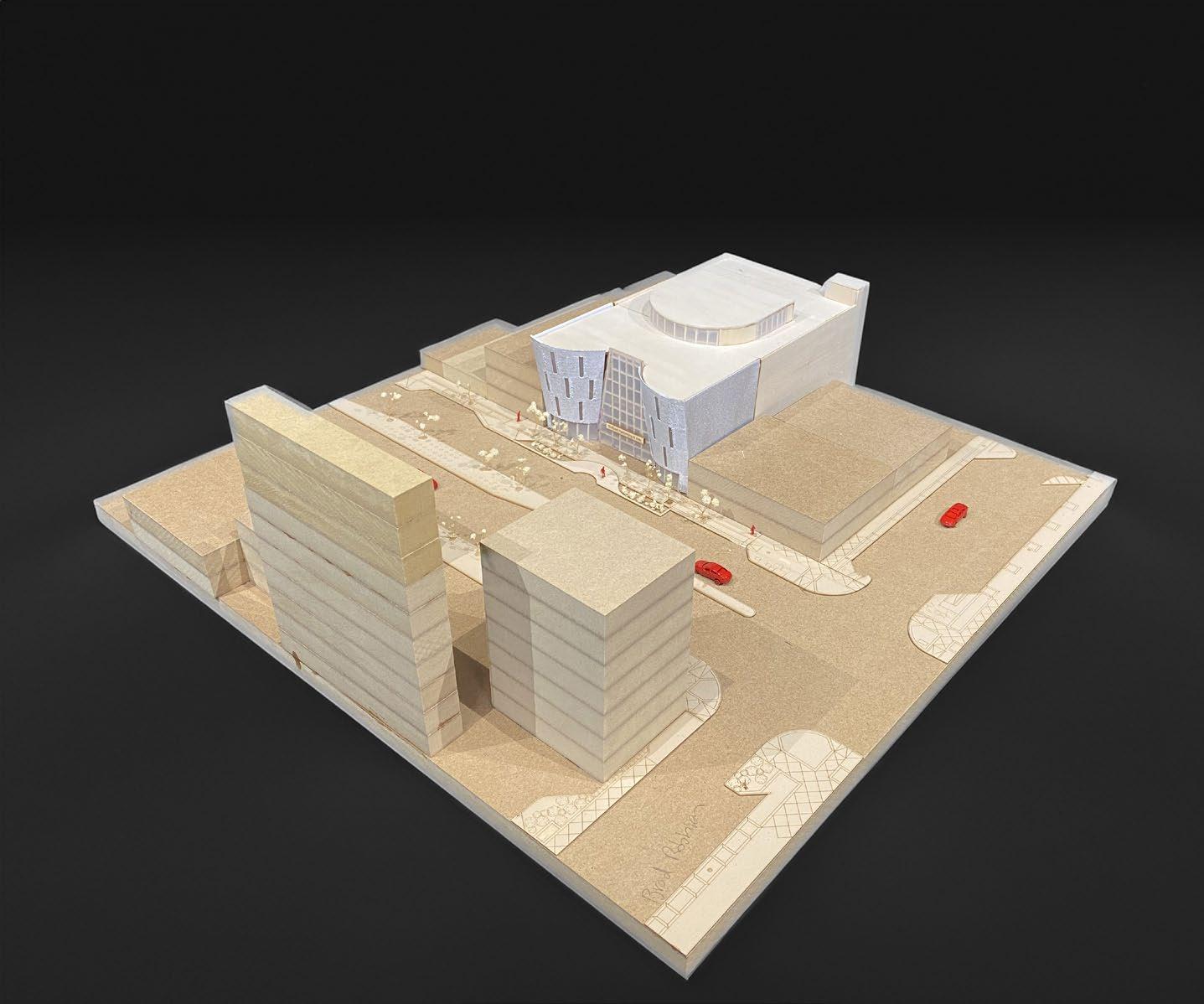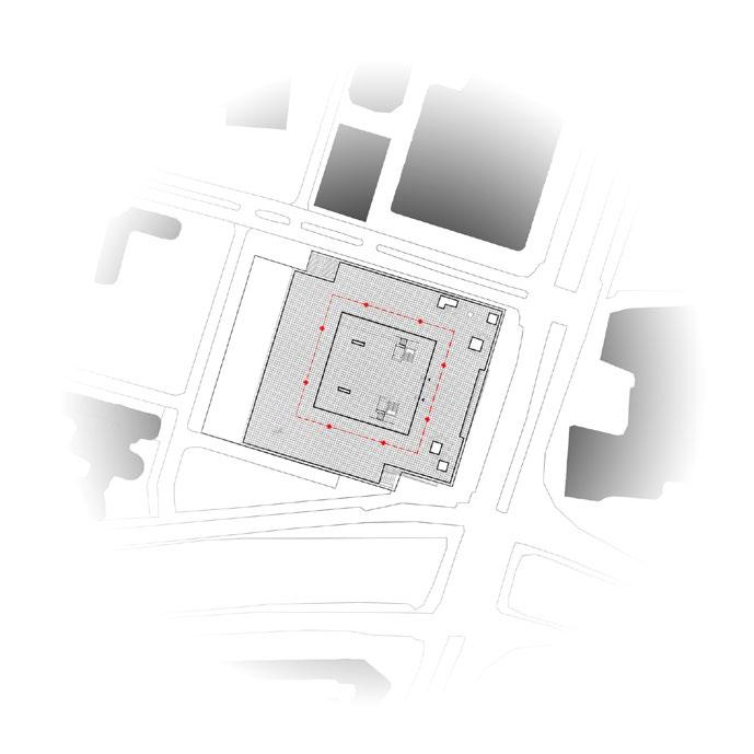 The building is designed within a grid layout that aligns with existing map/site conditions