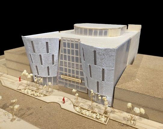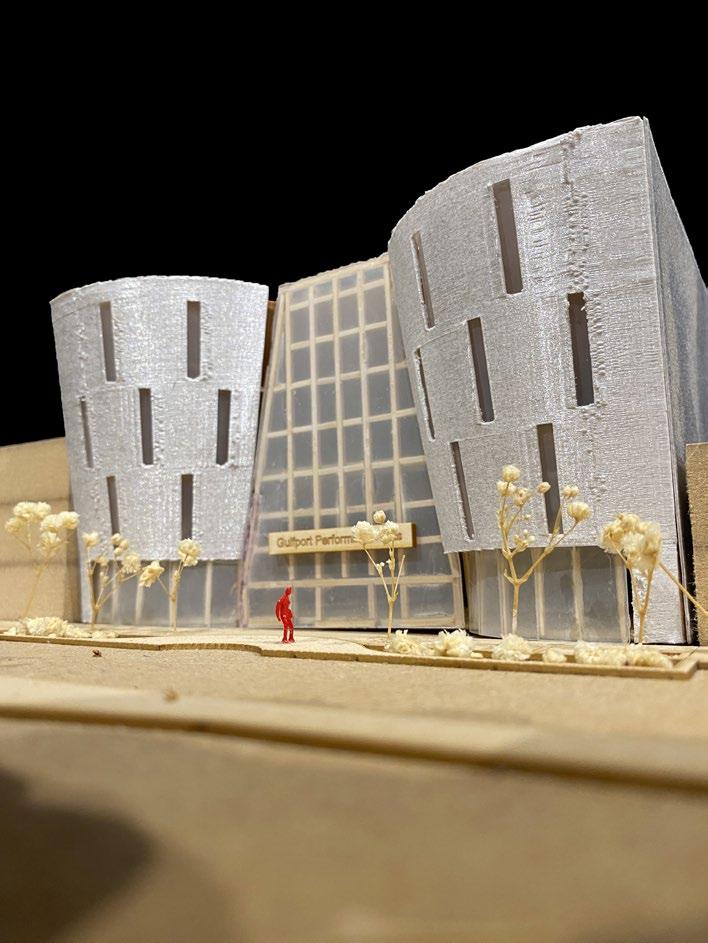 The building’s orientation appears meticulously planned to optimize energy efficiency and enhance overall performance. Specifically, adjustments in the design of the building’s envelope are made to regulate sunlight penetration into neighboring apartments while also complying with setback and height regulations. In terms of structure, the building incorporates substantial concrete columns cast on-site, a feature that has been a source of inspiration for my conceptual model designs. Towards the front, a cluster of columns may seem extravagant, but they effectively capture attention. Upon entry, the lobby space is artfully framed with a progressive layout, utilizing these prominent concrete columns to establish a directional flow that guides users into a space of significance. The structure of a building is essentially the ground in which the building stands on both literally and metaphorically. For one not to take advantage off it like the Shanghai Performing Arts Center does would be questionable