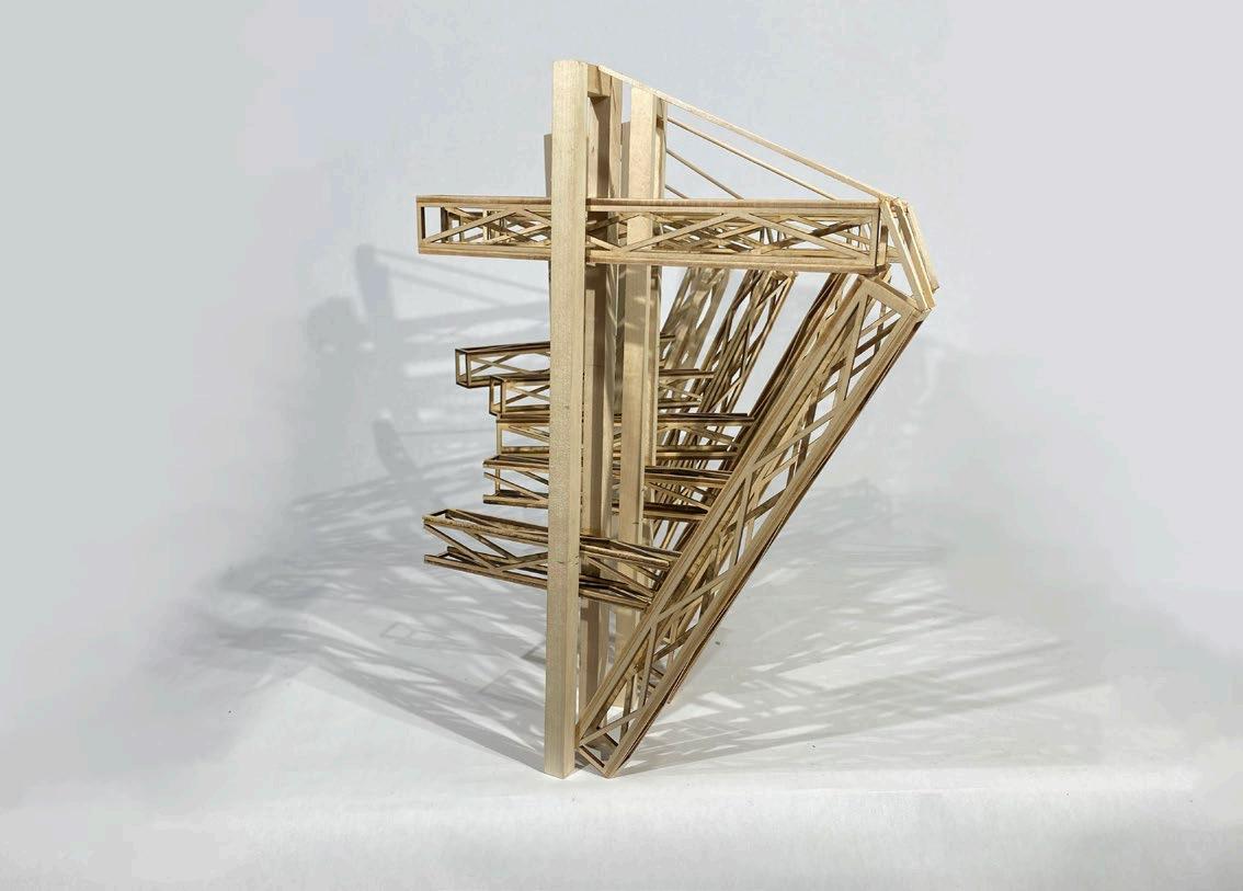This concept Post & Beam Truss Hybrid model essentially began from researching common structures that are found in airports and translations. Within these places there are usually these crane like structures that take on double meanings. a structural system that carry load on one side, but then uses its expressed structure on the other side to create other spaces. This Idea of a double use structure caught my interest and lead me to begin designing what essentially became this model.