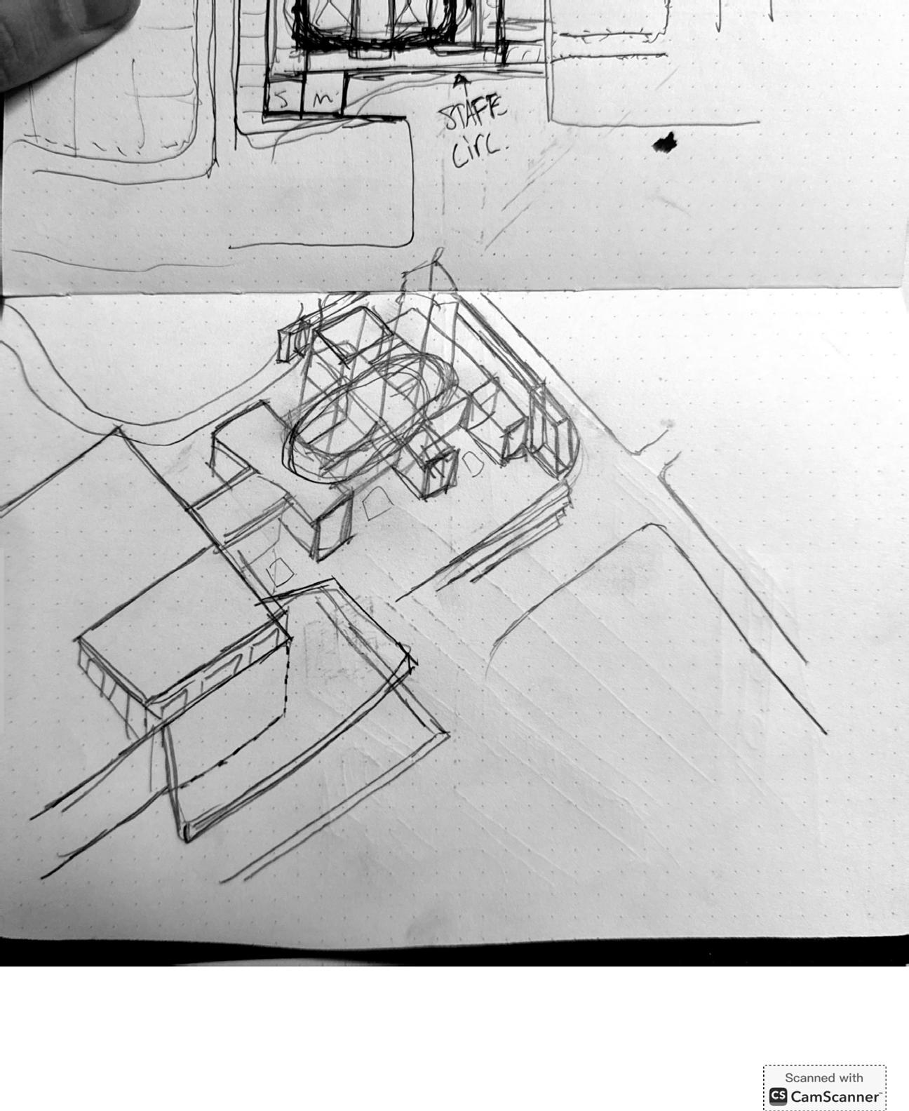 As the project progressed on, it was important that this motif remained strong through the entirety of the building. As it pushed its way deeper into the building, I began to use it as a rule in carving out gallery spaces within, creating moments of compression, openness, and framed views for sculpture. Eventually, the motif transitioned from simply creating space for sculpture to sit within in the interior galleries, to becoming an active participant in the sculptural experience, framing pieces from both inside the galleries and out, and ultimately becoming the backdrop against which sculpture is placed in the central sculpture garden.