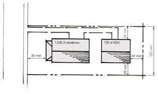 This is appropriate sitting and setback of a 750-square-foot accessory dwelling unit in relation to the primary dwelling. . (2021). Graphic, Hillsborough, North Carolina.